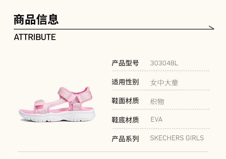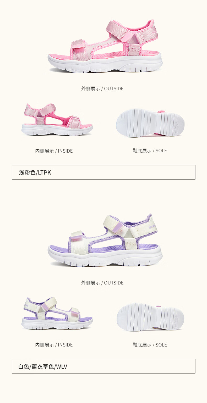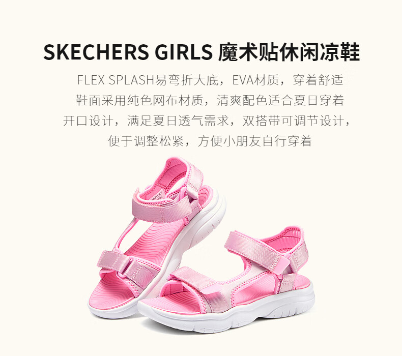 Skechers Girls Velcro Sports Sandals 303048L Light Pink/LTPK 27.5