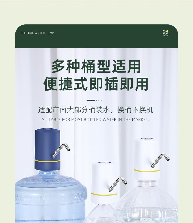 Xiaomi Guoba Wireless Electric Water Pump Fully Automatic Portable Bottled Water Dispenser Water Absorber Household Strong Water Pumping Artifact Genuine Ten Year Warranty 01 Blue + TYPE-C + Blue Aperture + 304 Water Outlet Pipe