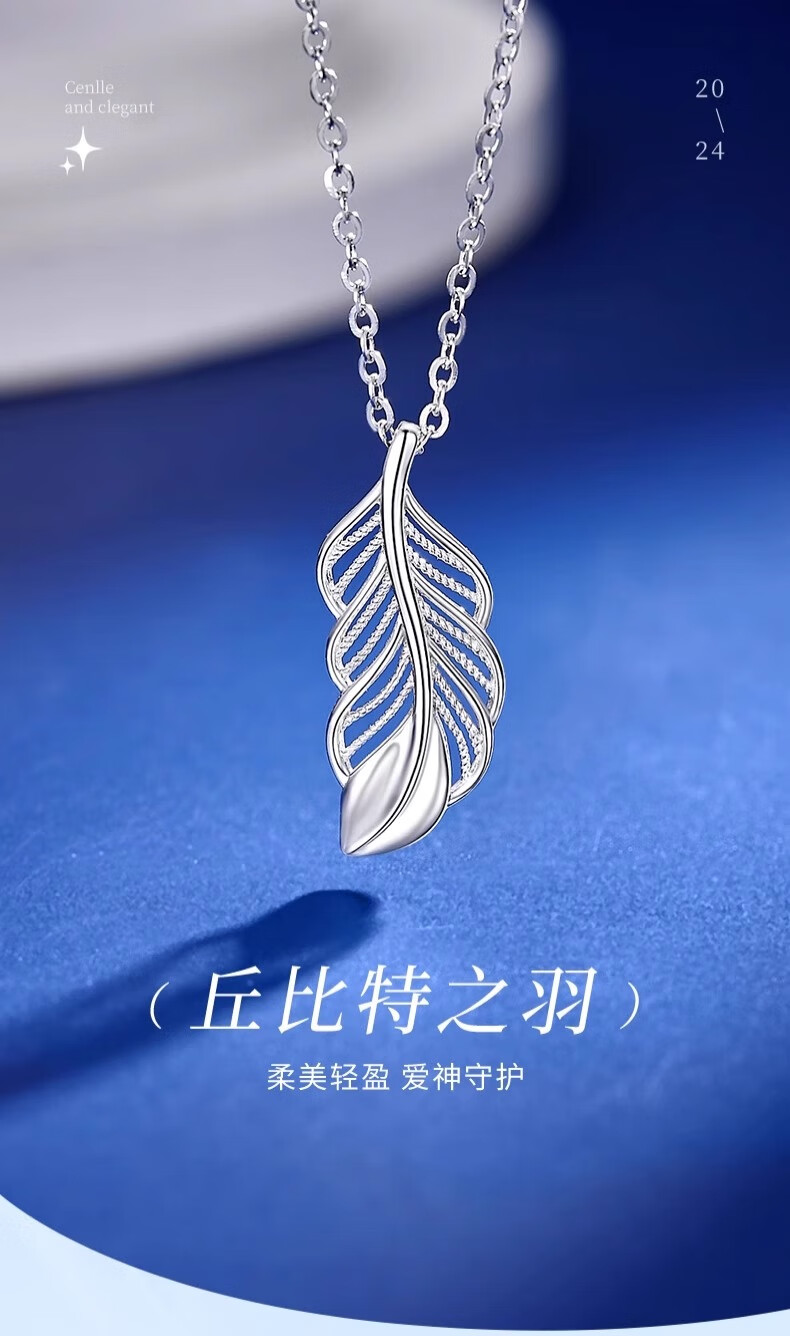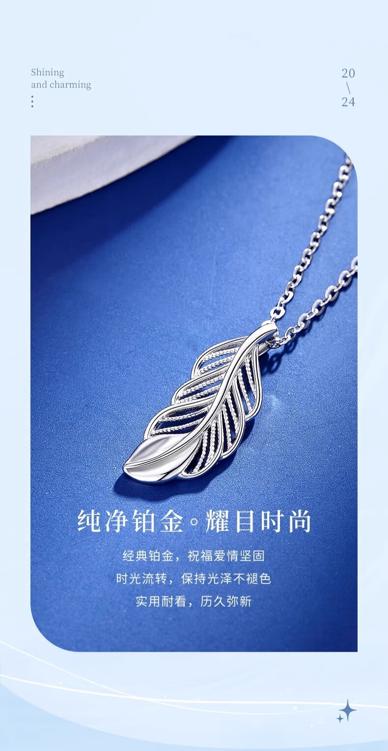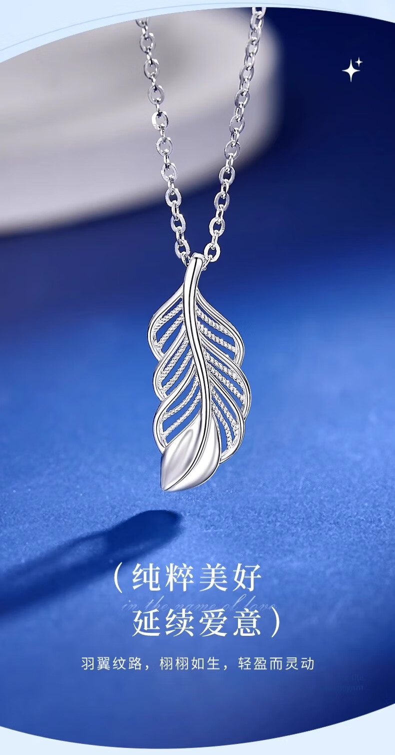 Chinese jewelry SINO GEMPT950 platinum feather necklace new platinum pendant Valentine's Day 520 gift for girlfriend PT950 platinum feather pendant free silver chain about 2.1g
