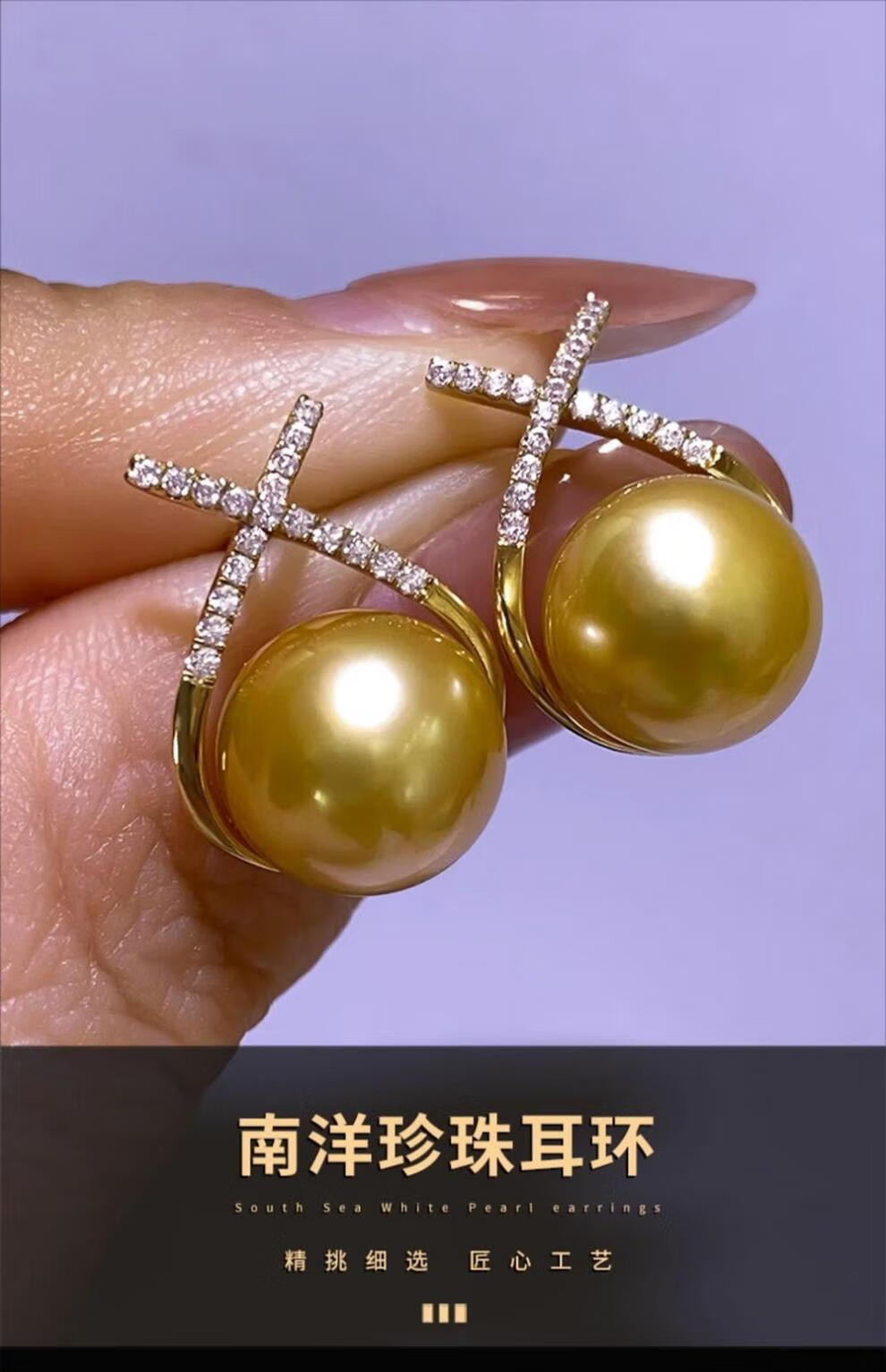 Daily Wear Pearl Necklace South Sea Gold Beads Earrings Thick Gold Simple Classic Perfect Round Sea South Sea Gold Beads Earrings 10-10mm