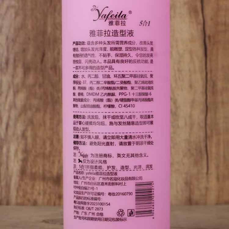 Yafila Official Direct Sales Yafila Styling Essence Moisturizing and Styling Volume Protector Elastin Five-in-One Soft Yafila Styling Liquid 250ml