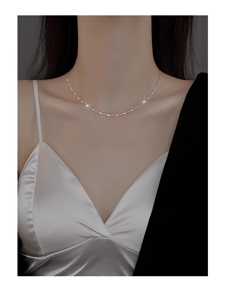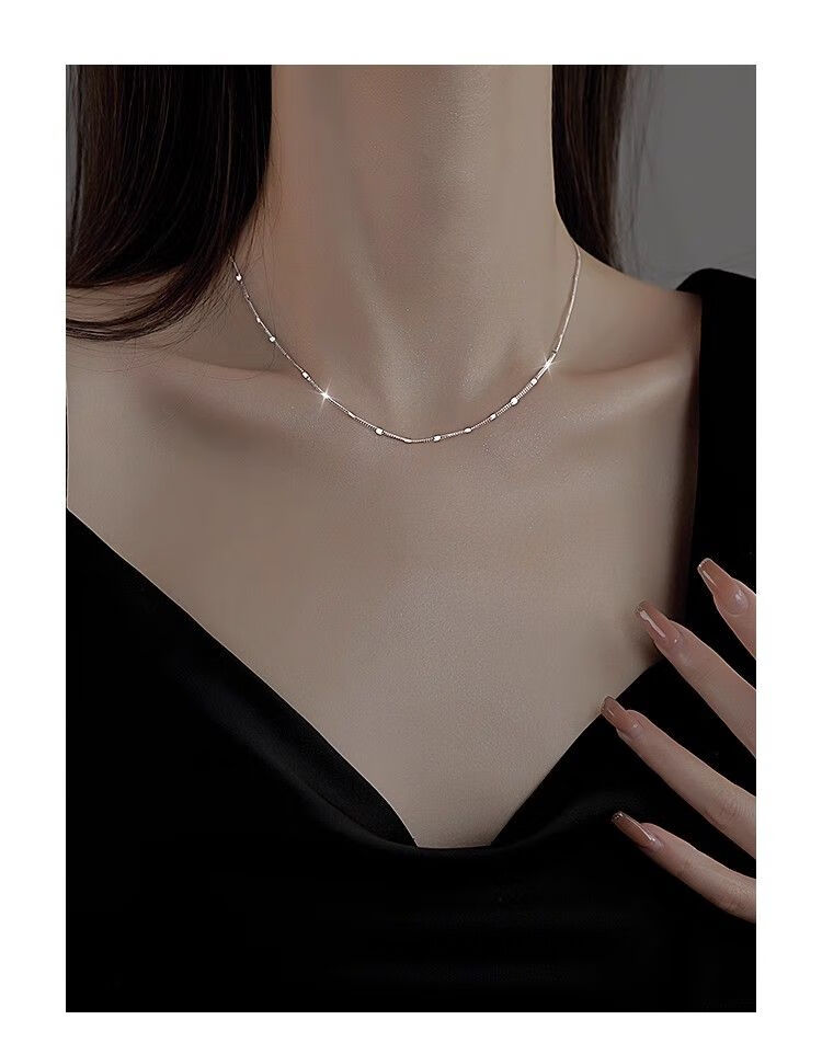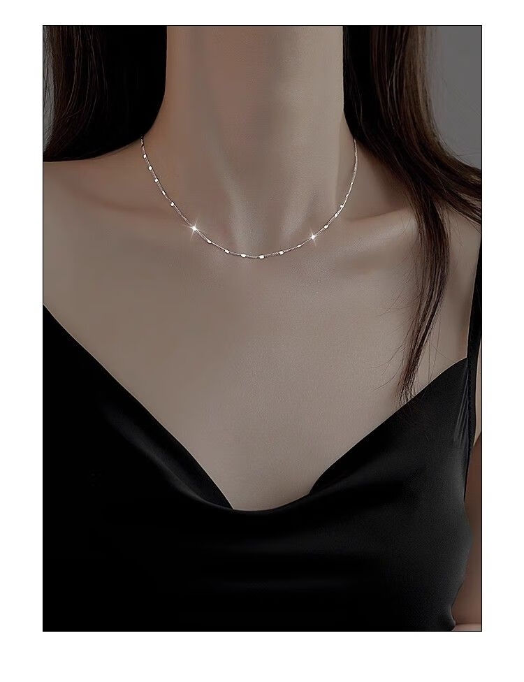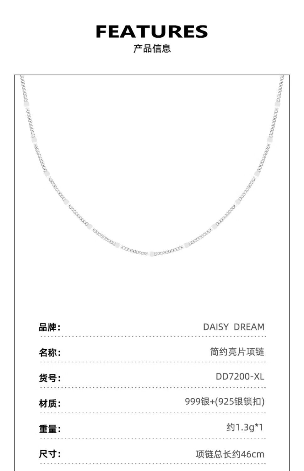 DAISY DREAM999 Pure Silver Necklace Women's 2025 New Hot Style Niche Design Clavicle Chain Simple Plain Chain Temperament Necklace Brand Gift Box 999 Silver Simple Sequin Necklace