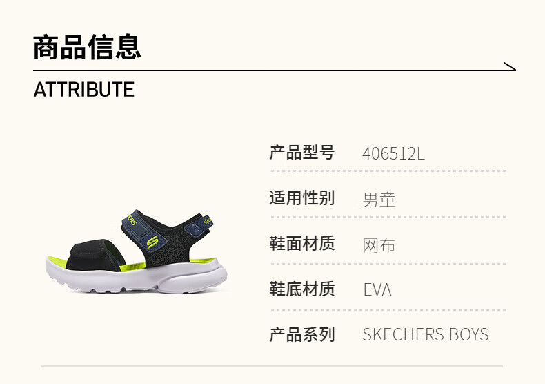 Skechers boys' open toe sandals 406512L black/BLK 33.5