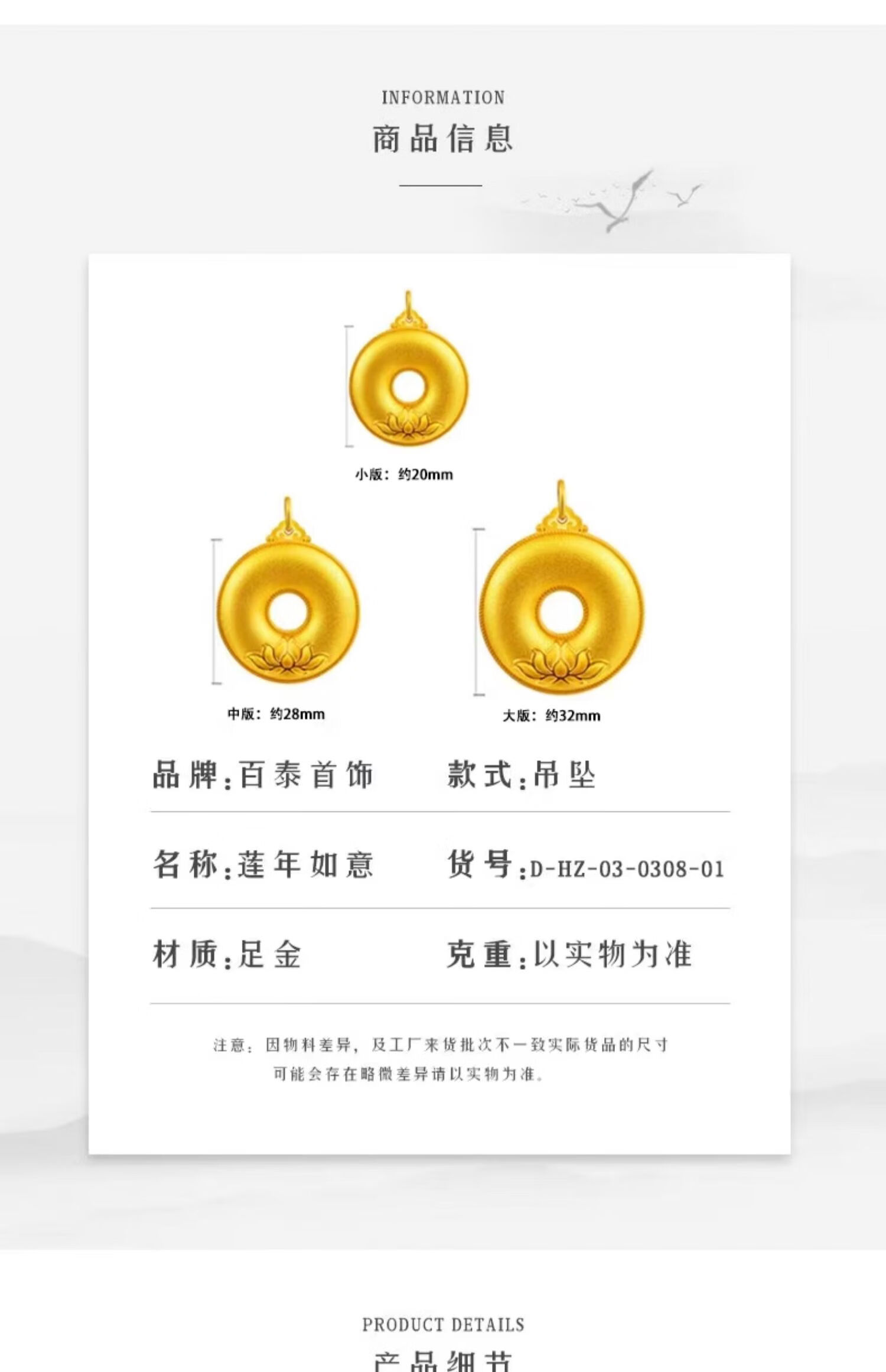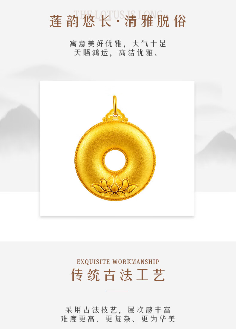 Micro-gift ancient gold pendant men's gold 999 pendant lotus year wishful necklace peace buckle pendant women's peace buckle single pendant small version 3.04g
