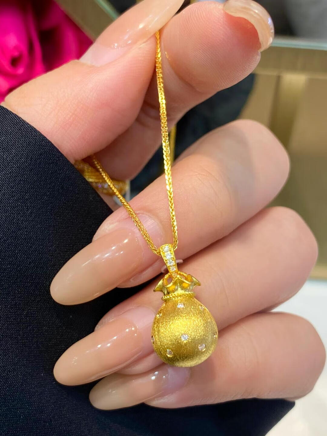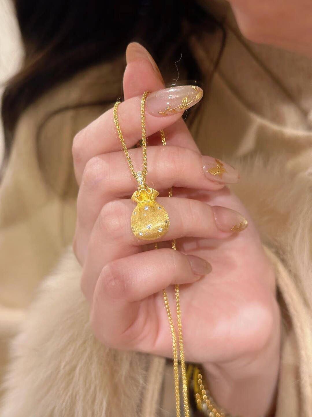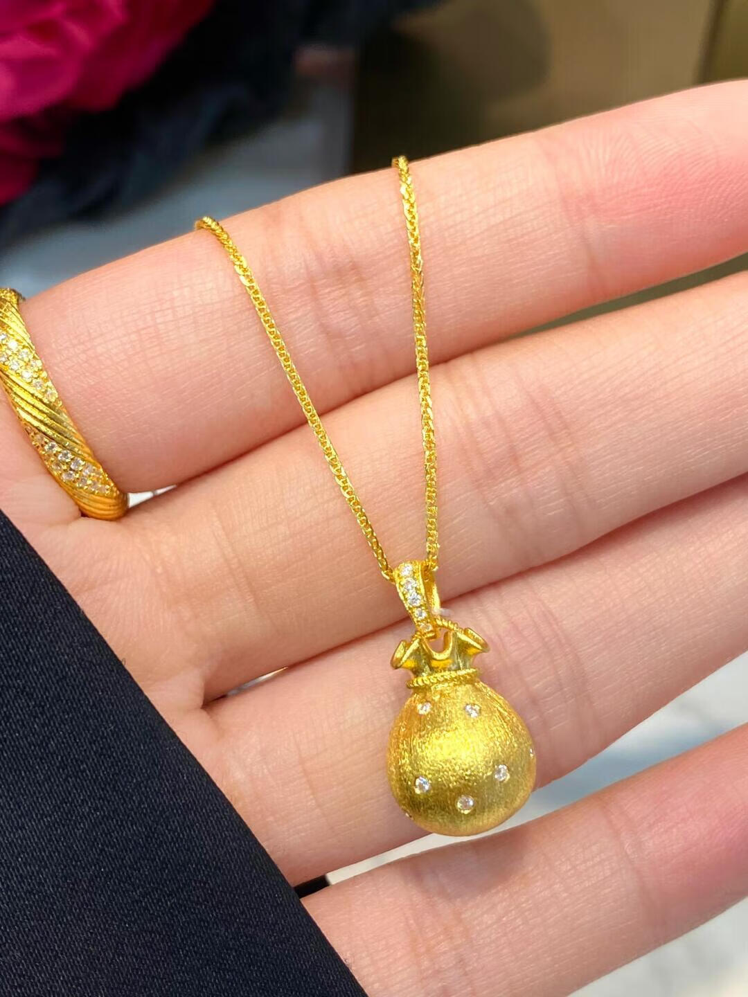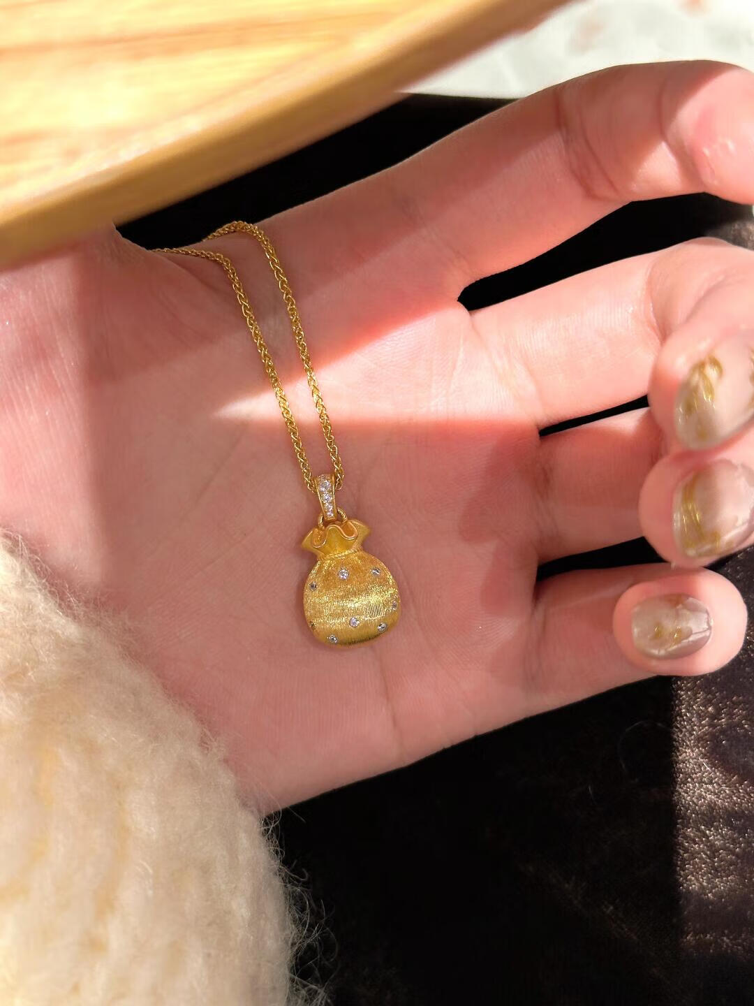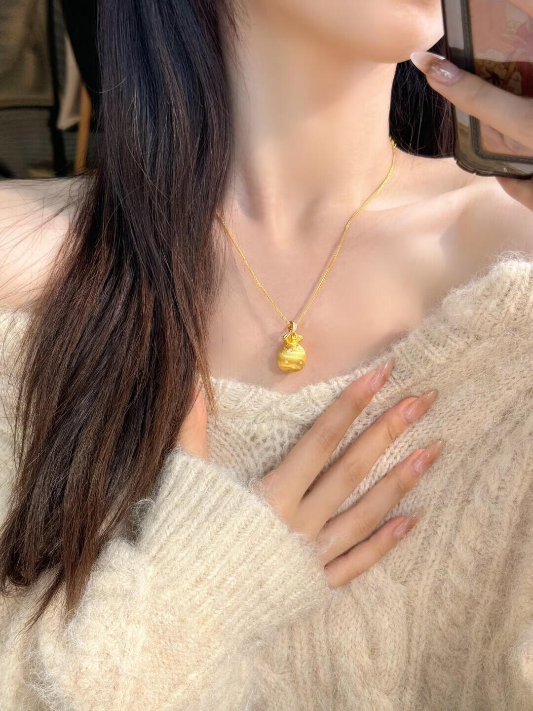Slightly gifted gold-plated silver-brushed money bag pendant necklace for female Wei Xue of the same style filigree small blessing bag pendant clavicle chain sweater chain brushed money bag pendant gold-filled about 0.4 grams free