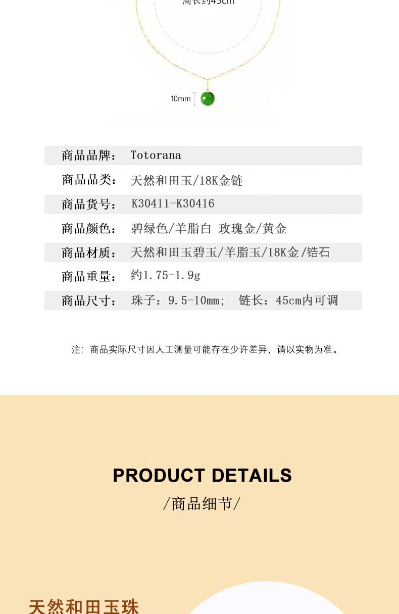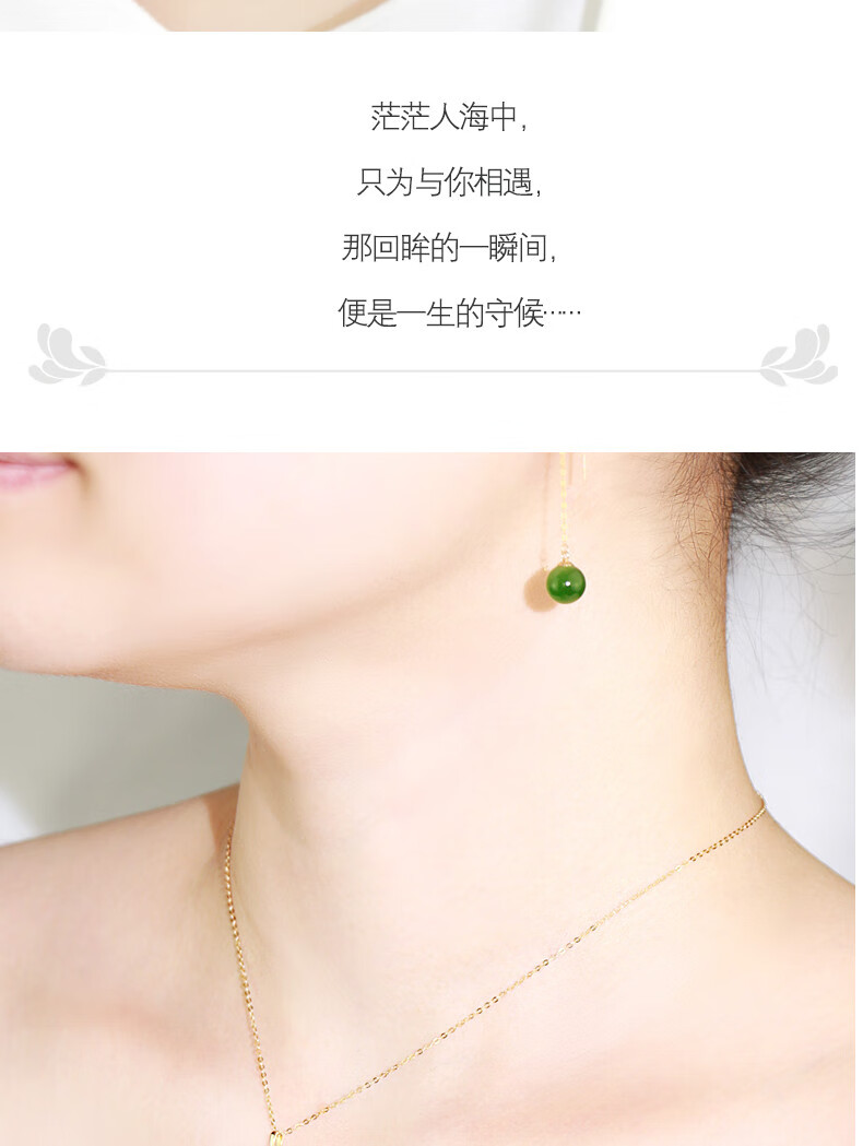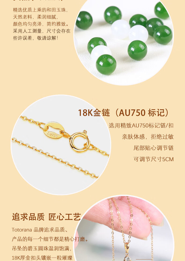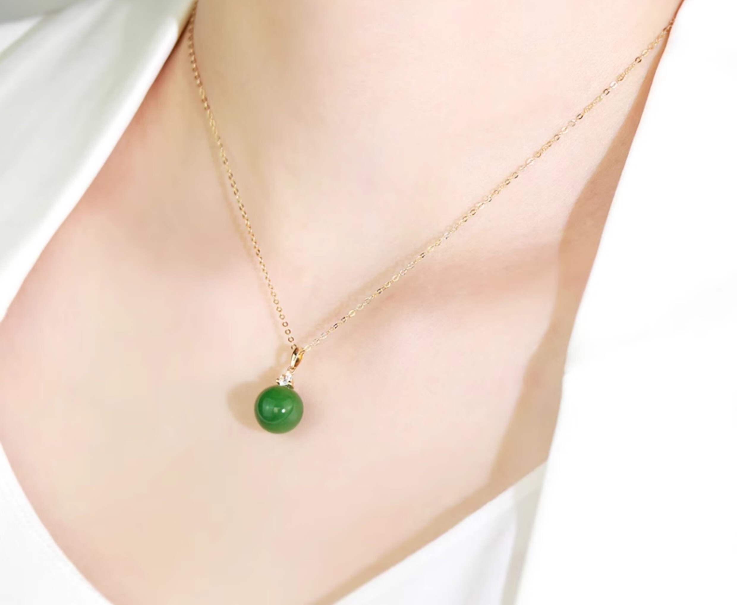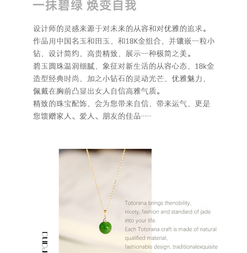 Microgift a18K gold natural Hetian jade jasper pendant necklace clavicle chain gold inlaid jade jewelry birthday gift 18K gold round bead jasper pendant + free S925 gold plated 45cm
