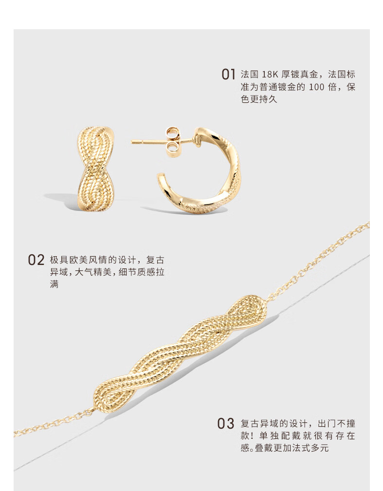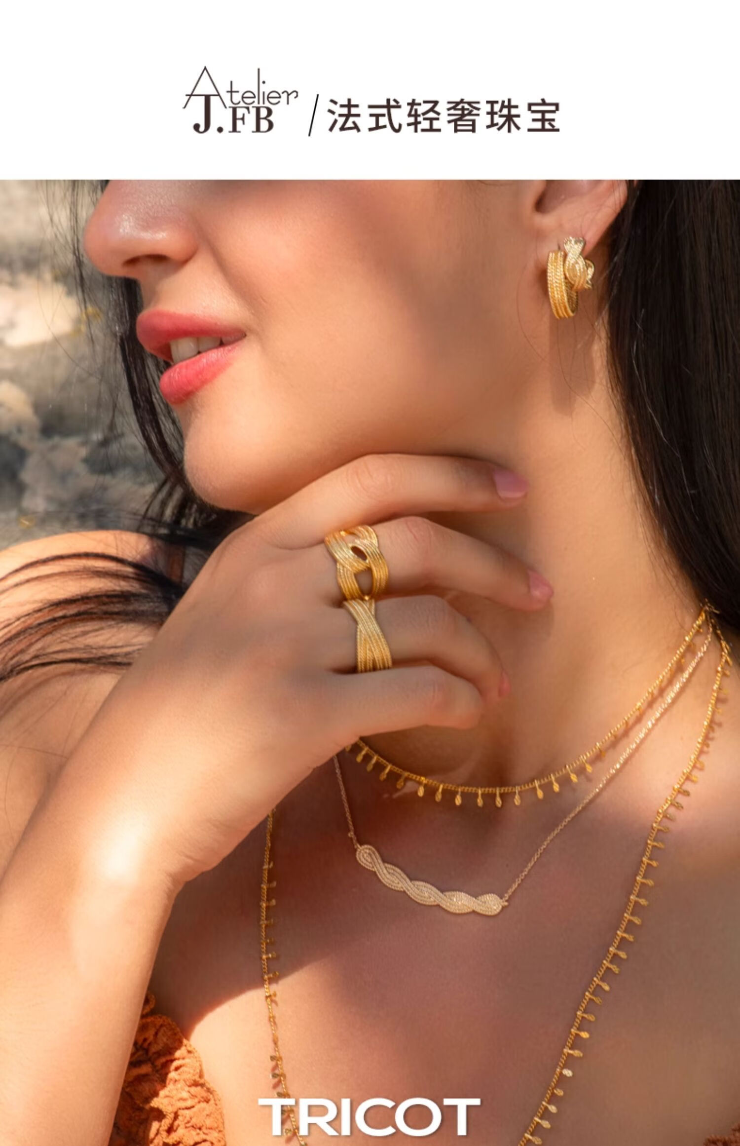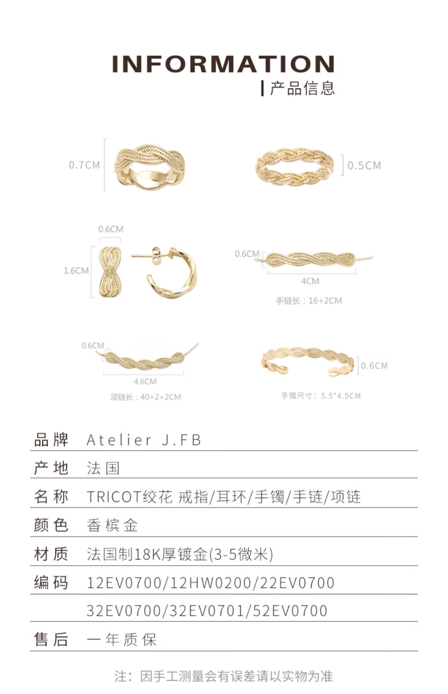 Weici JFB French imported cable 18K thick gold bracelet ring necklace French retro braided old money style Bahnfeng small cable ring 50 country code 10