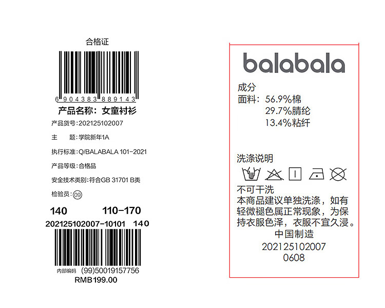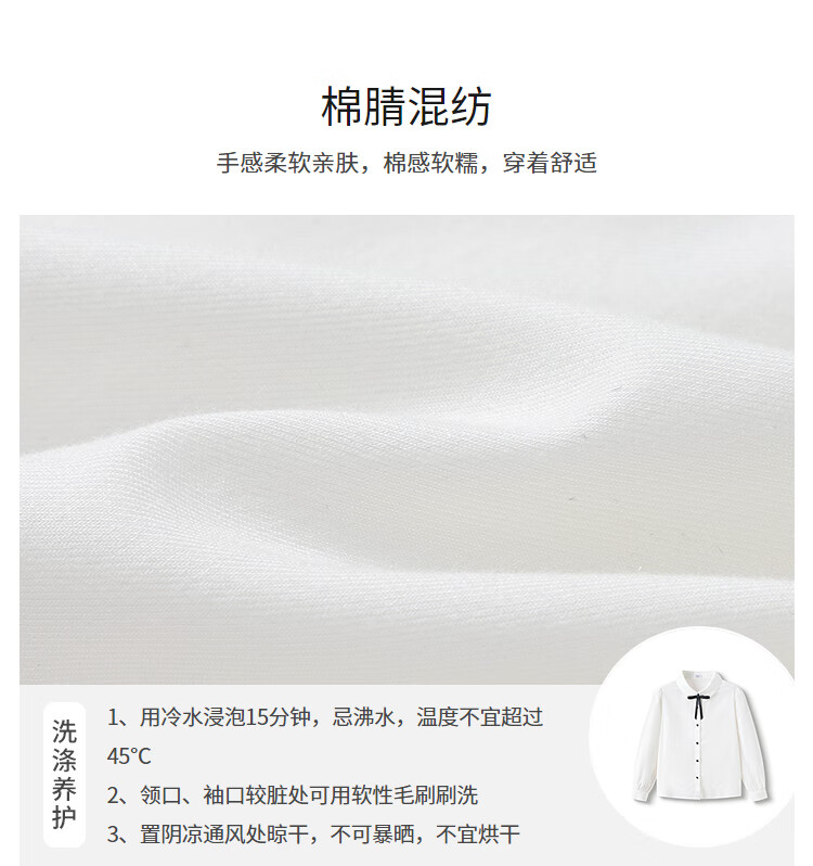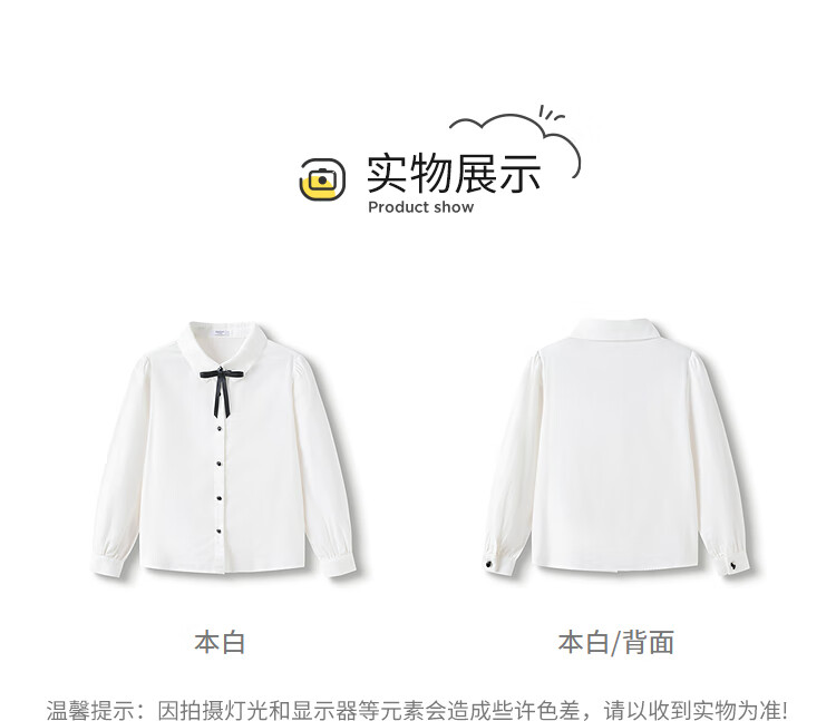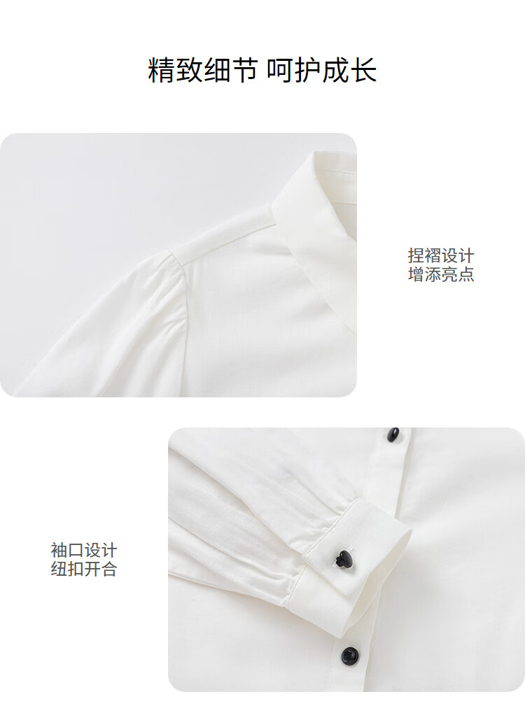 Balabala shopping mall same style children's long-sleeved shirt girls 2025 spring big children college style white shirt original white 10101 170 cm