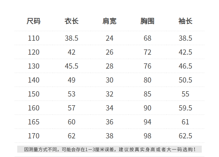 China (cm) 160-165/84-86 165-170 / 88-90 167-172 / 92-96 168-173 / 98-102 170-176 / 106-110