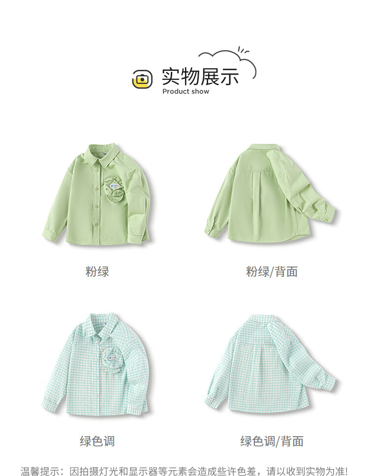Balabala designer SICO mall same style boys long-sleeved shirt 2025 spring new shirt jacket pink green 40339 90