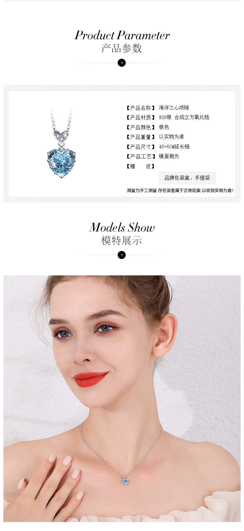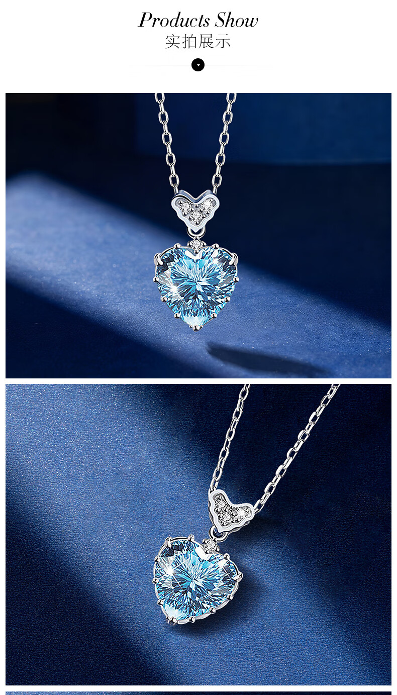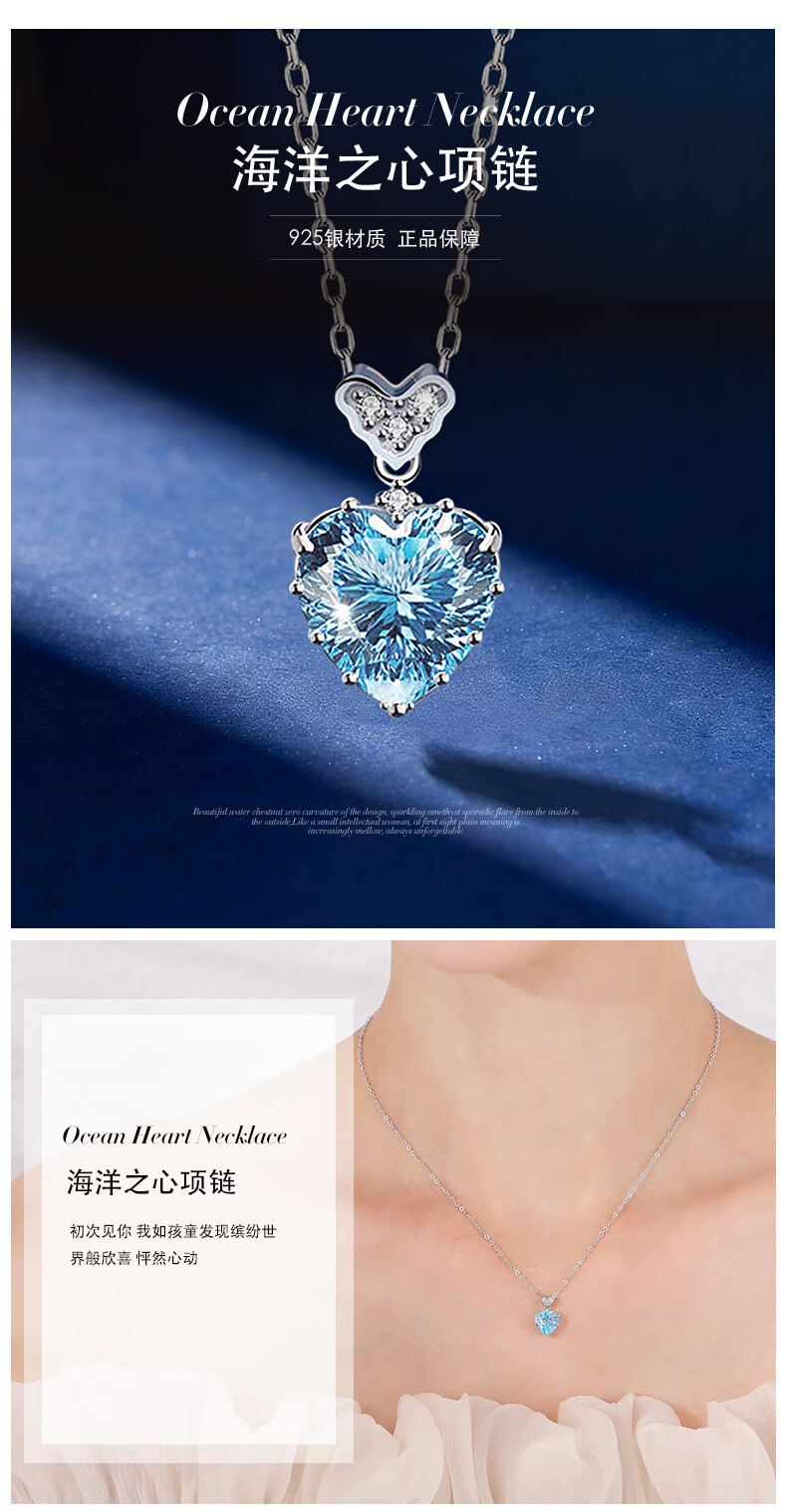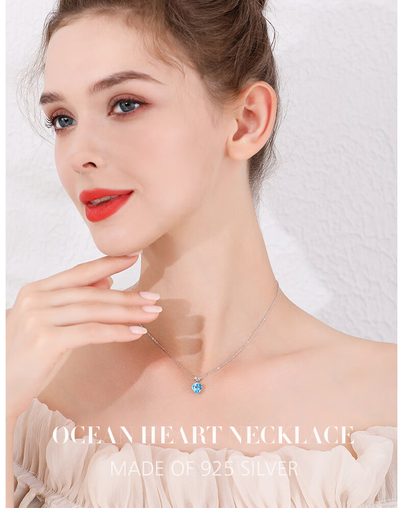Grace Girl Light Luxury Heart of the Ocean Necklace Women's Silver Bracelet Practical Heart Jewelry Valentine's Day Birthday Gift for Girlfriend and Wife Heart of the Ocean Necklace (Purple)