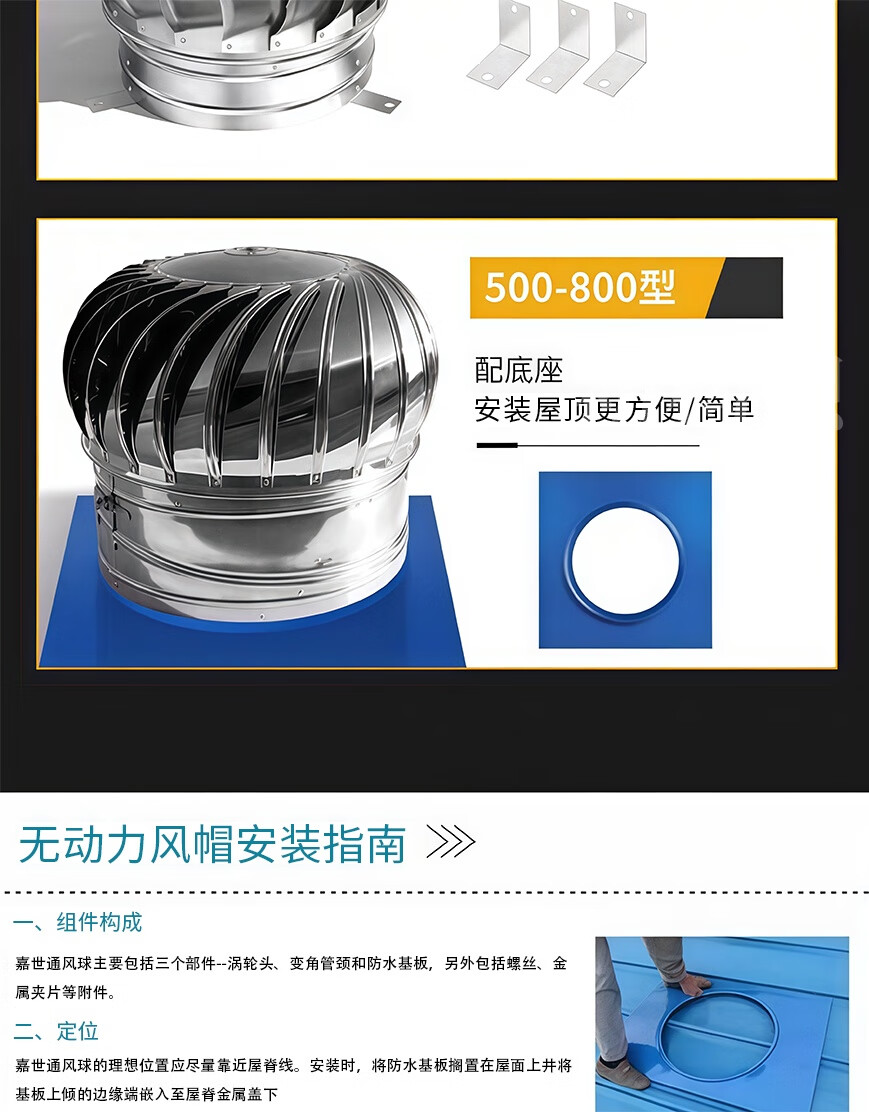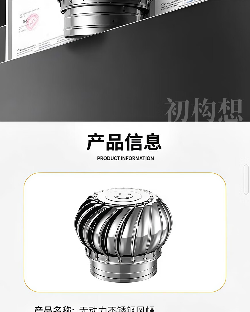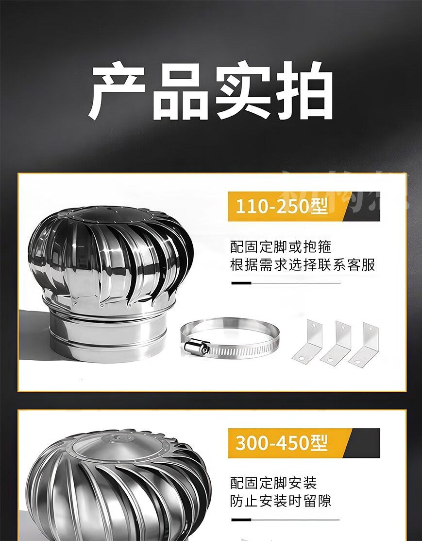 Initial conception of 304 stainless steel unpowered 600 type wind ball hood roof ventilator factory pig house flue exhaust replacement balloon finished product 304 extra thick wind ball 110 model + free clamp