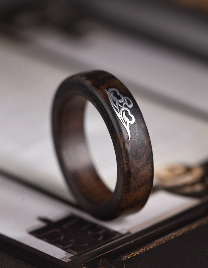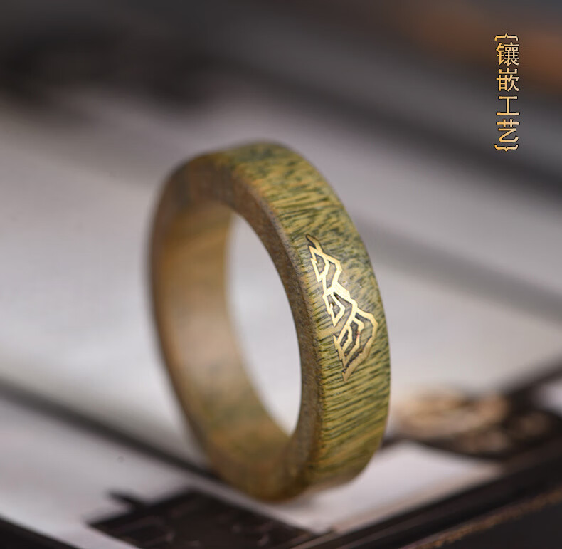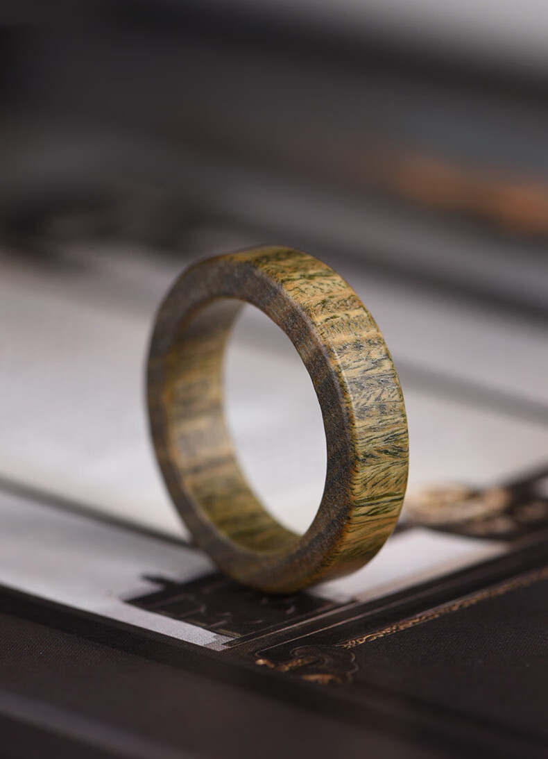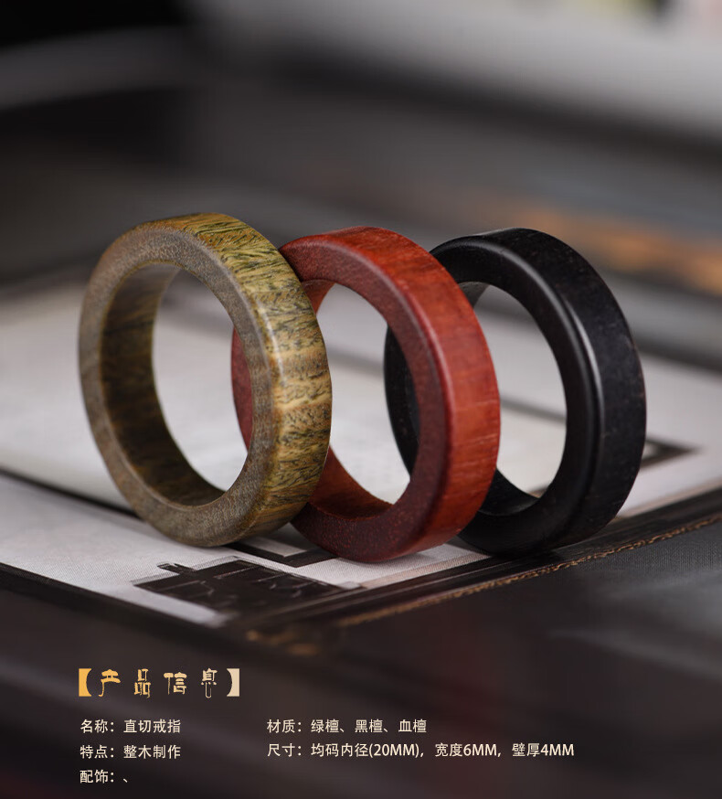 Mrs. Win's straight-cut ring, sandalwood green sandalwood, blood sandalwood log tail ring, thin round finger ring, handpiece, small piece craftsmanship, green sandalwood straight-cut