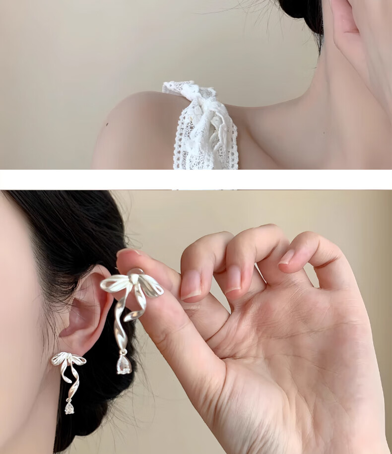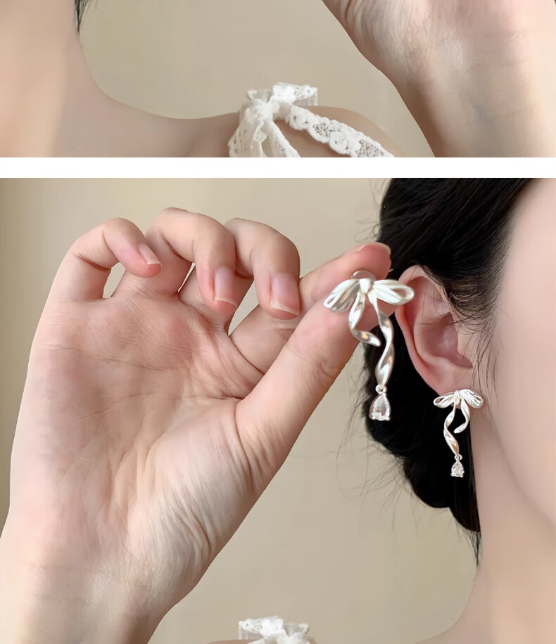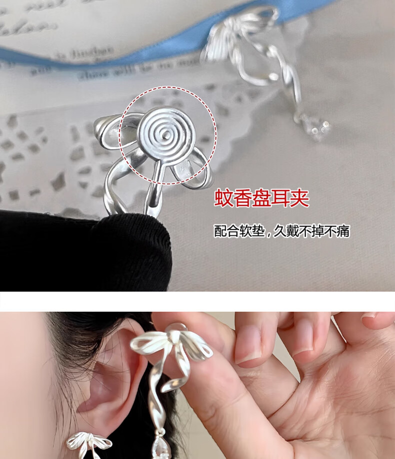 QMXD bow sweet ear clip for women without pierced ears sweet dream ballet girl feeling 2025 new exquisite mosquito coil earrings for women bow ear clip without pierced ears