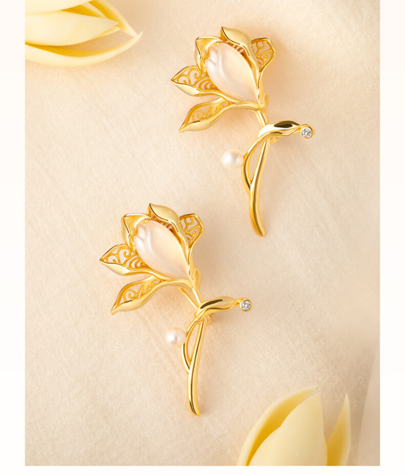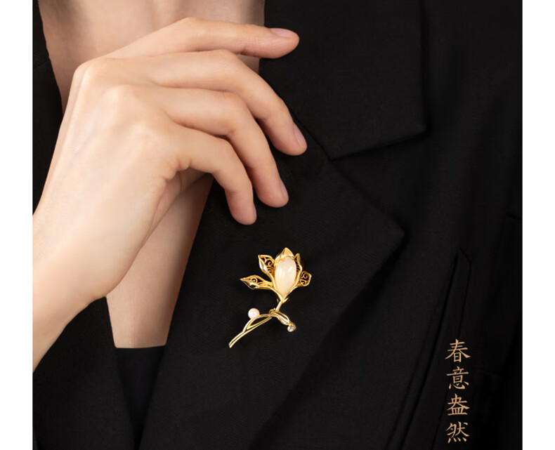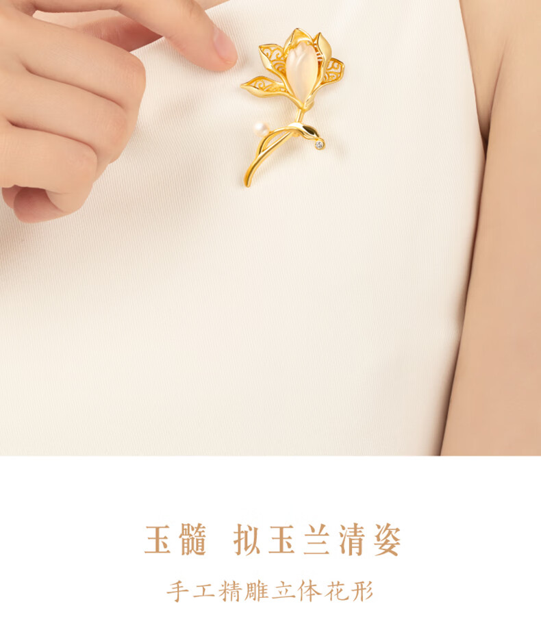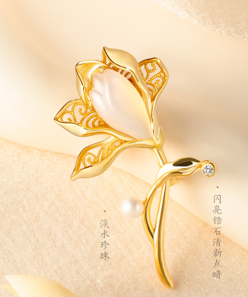 La Martina Magnolia High-end Brooch Women's Pearl Corsage Accessories Press-front Birthday Gift Practical for Wife High-end Magnolia Brooch Light Luxury Gift Box