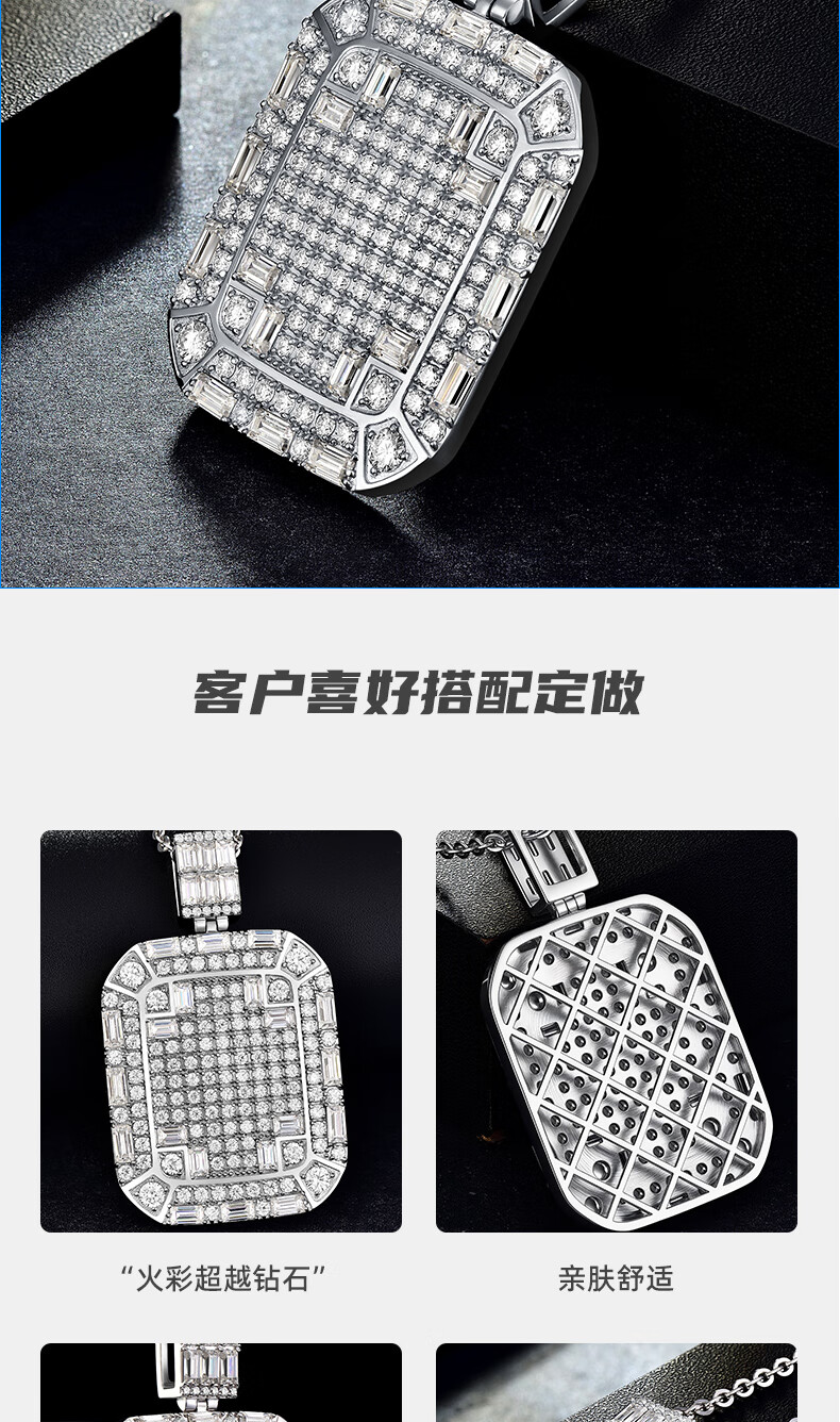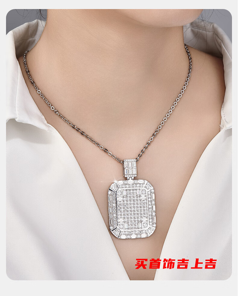 GsunG Platinum Moissanite Pendant PT950 Women's Square Luxury Full Diamond Pendant Sweater Chain Men's Pure Platinum Pendant Priced by Gram, Contact Customer Service Before Buying