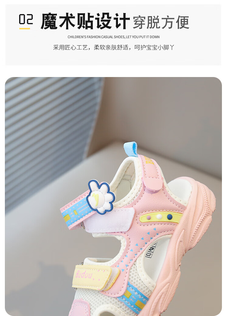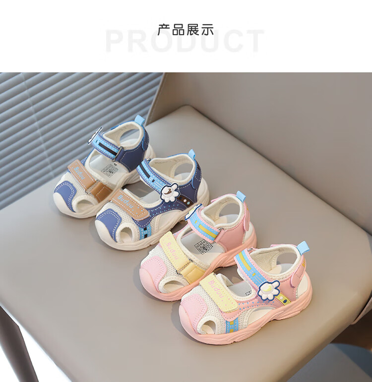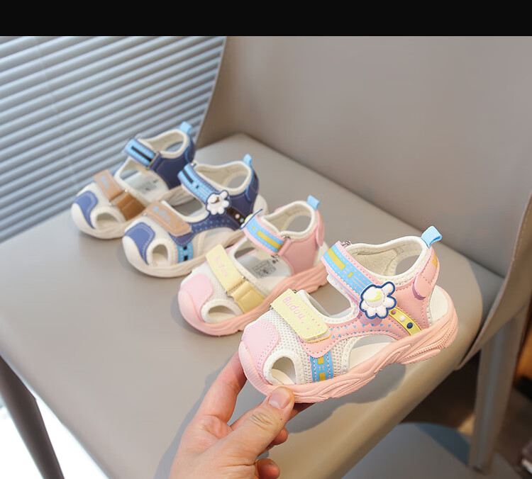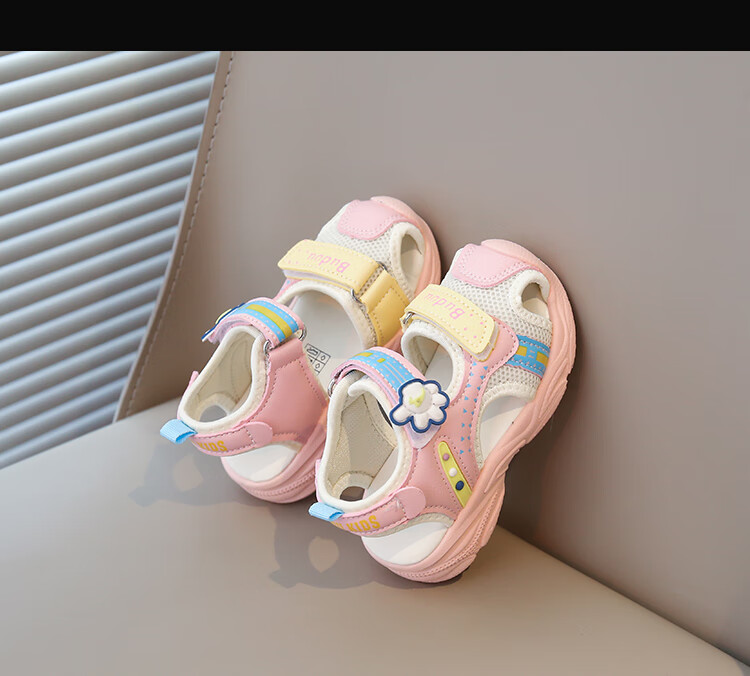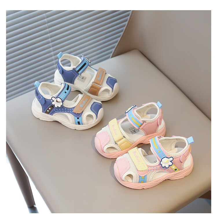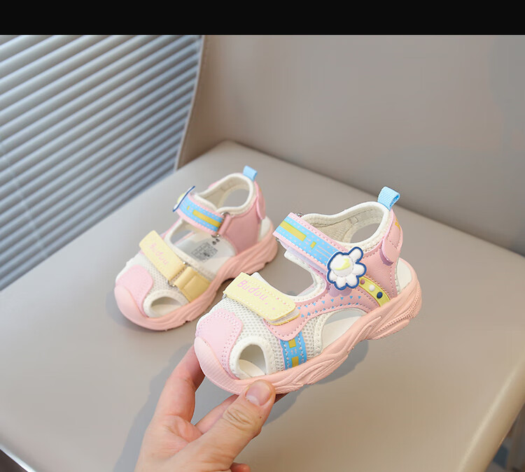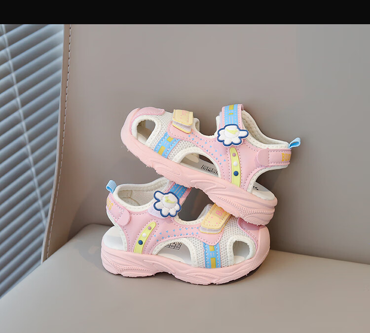 Baby Baotou Anti-kick Sandals Summer New Girls Toddler Shoes Korean Style Boys Beach Shoes Soft Sole Functional Shoes Pink 24 Inner Length 15cm
