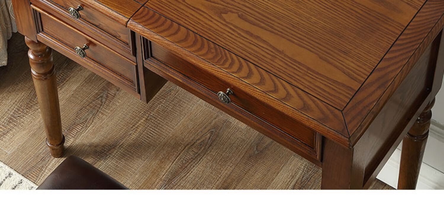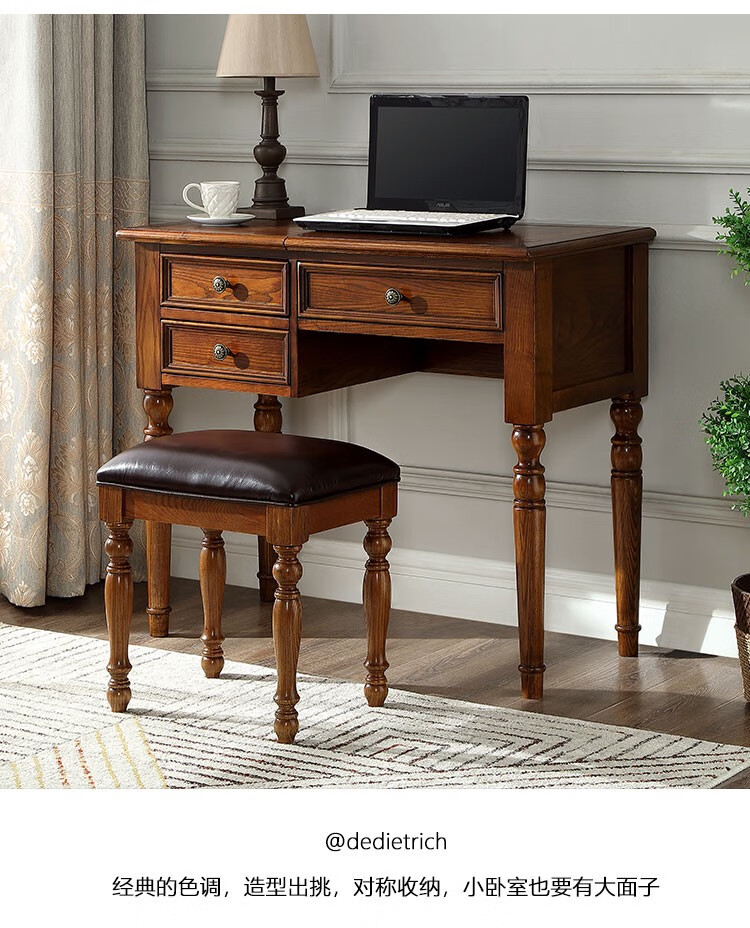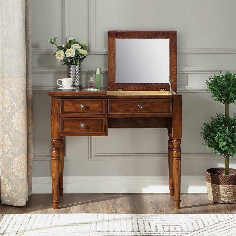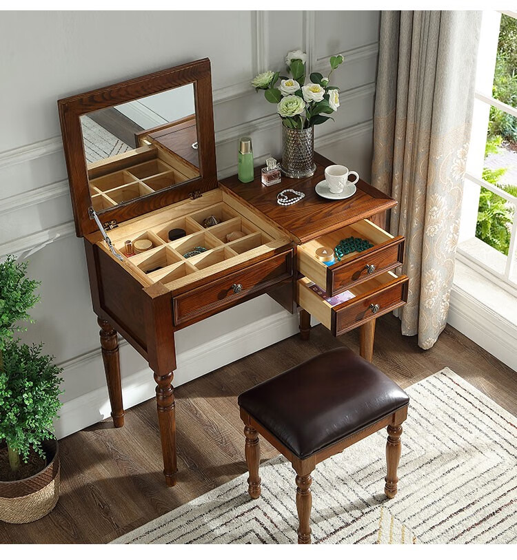 Ufsagcg American dressing table for bedroom small apartment folding ash wood all solid wood desk one-piece multi-functional flip cover ash wood dressing table + stool 100x45x78cm