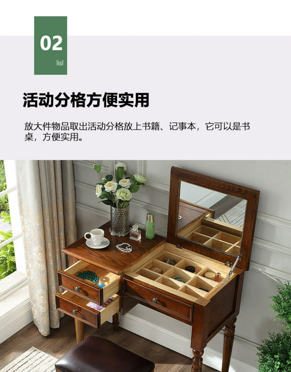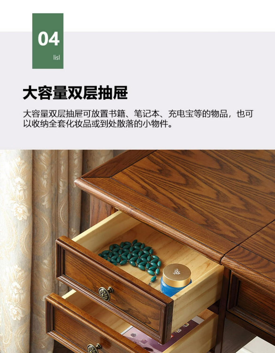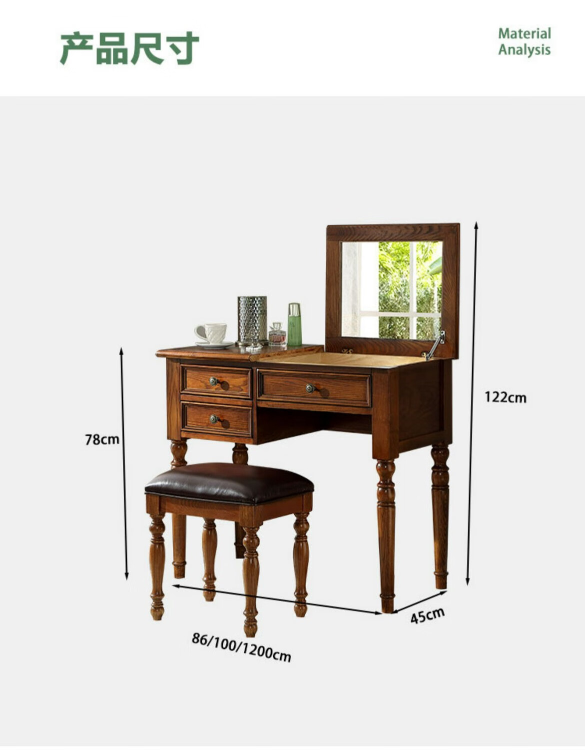 Ufsagcg American dressing table for bedroom small apartment folding ash wood all solid wood desk one-piece multi-functional flip cover ash wood dressing table + stool 100x45x78cm