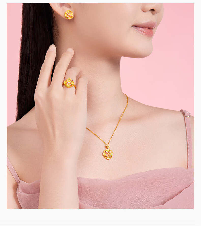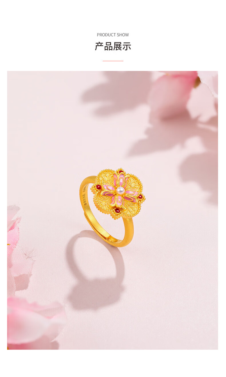 VZZS gold ring women's happy lily of the valley flower ring pure gold 999.9 pearls for Valentine's Day gift lily of the valley flower gold ring 6.10g