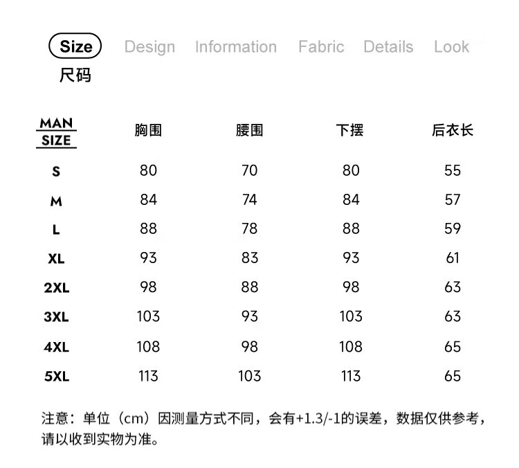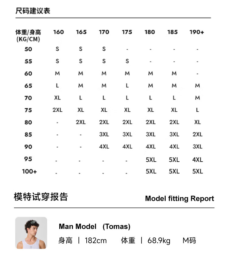 China (cm) 160-165/84-86 165-170 / 88-90 167-172 / 92-96 168-173 / 98-102 170-176 / 106-110
