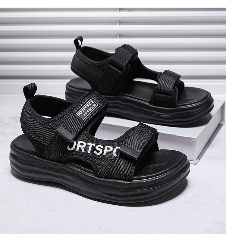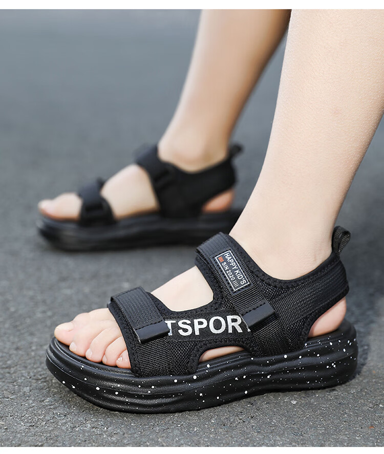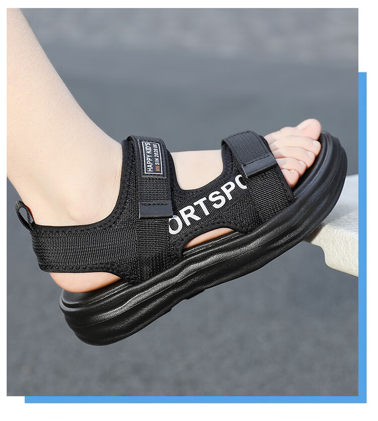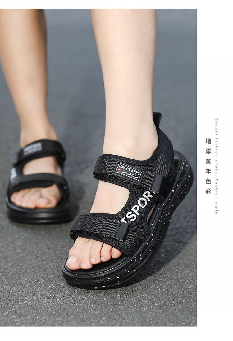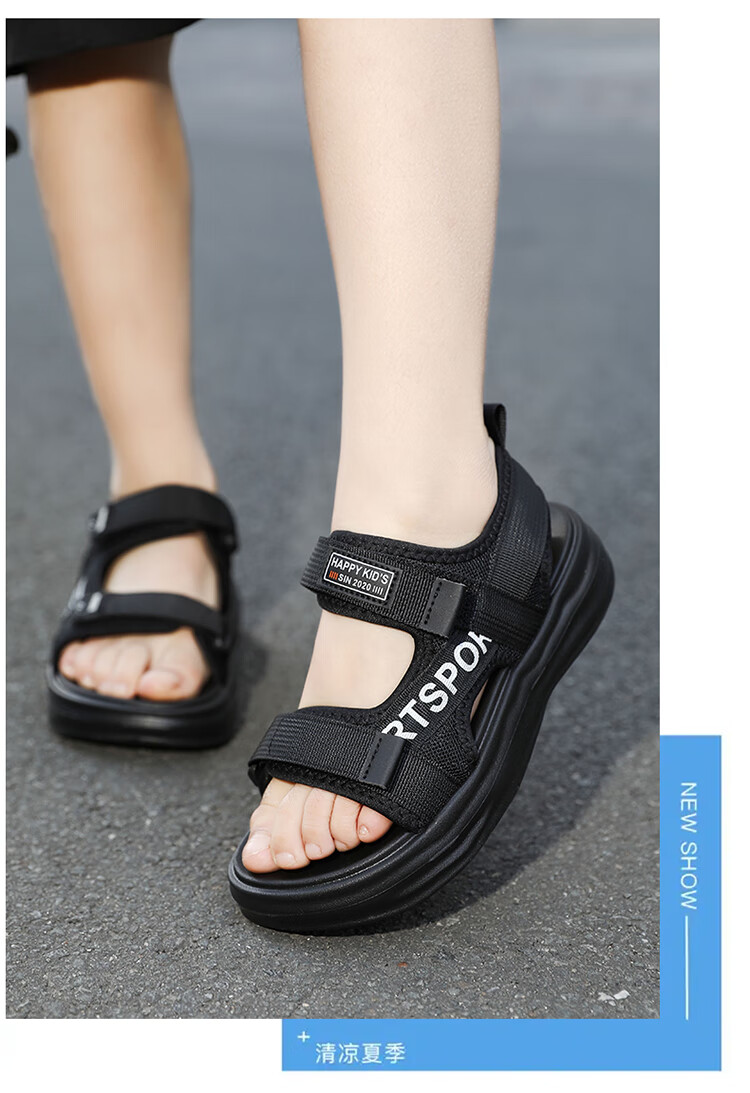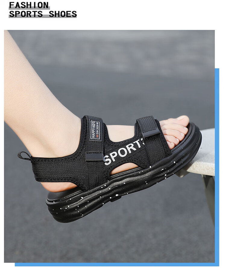 Boys Sandals 2025 Summer New Hollow Children's Beach Shoes Soft Sole Non-Slip Handsome Middle and Large Children Open Toe Sandals HBL2507/Black Size 38 Standard Size