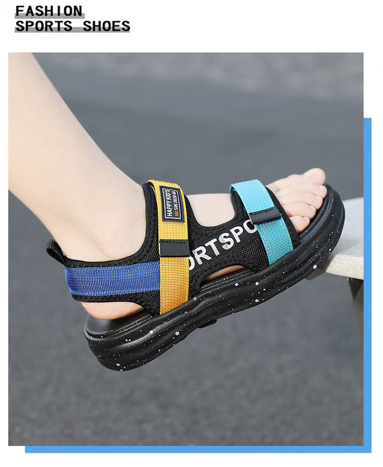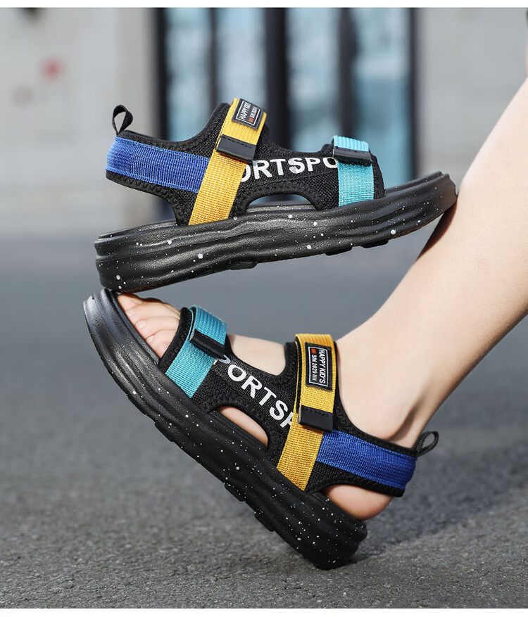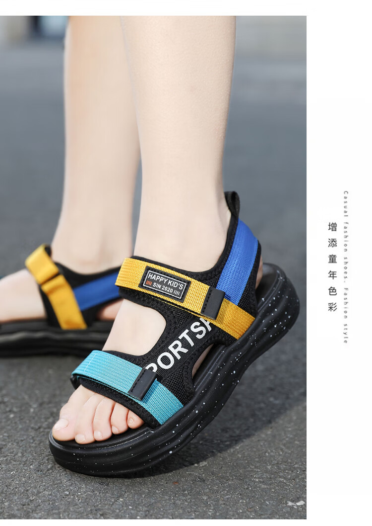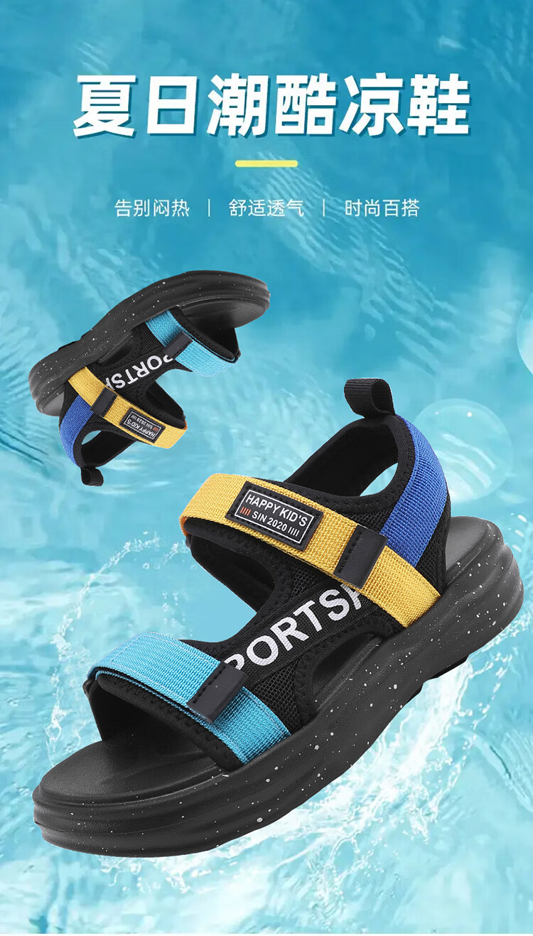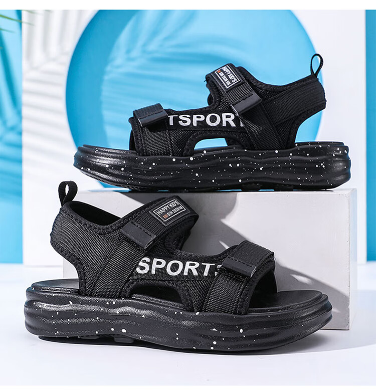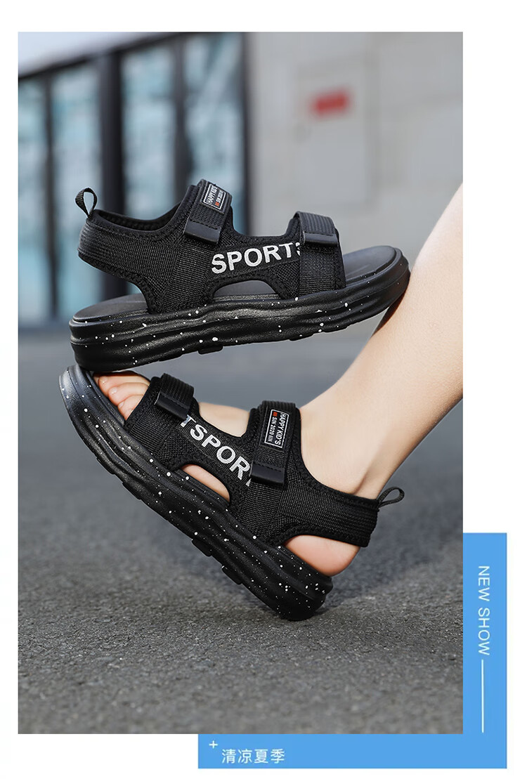 Boys Sandals 2025 Summer New Hollow Children's Beach Shoes Soft Sole Non-Slip Handsome Middle and Large Children Open Toe Sandals HBL2507/Black Size 38 Standard Size
