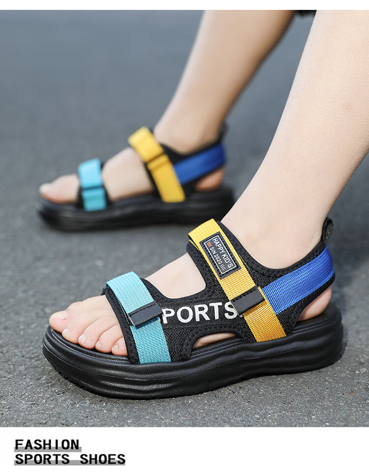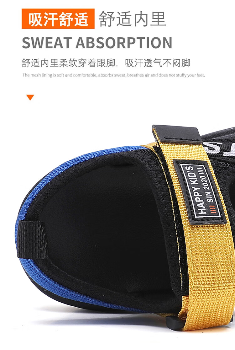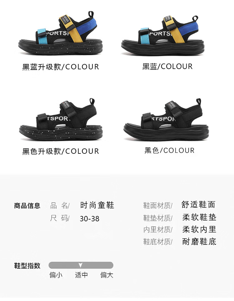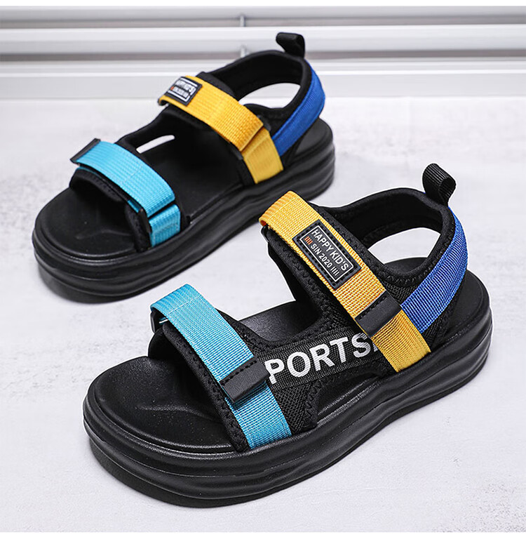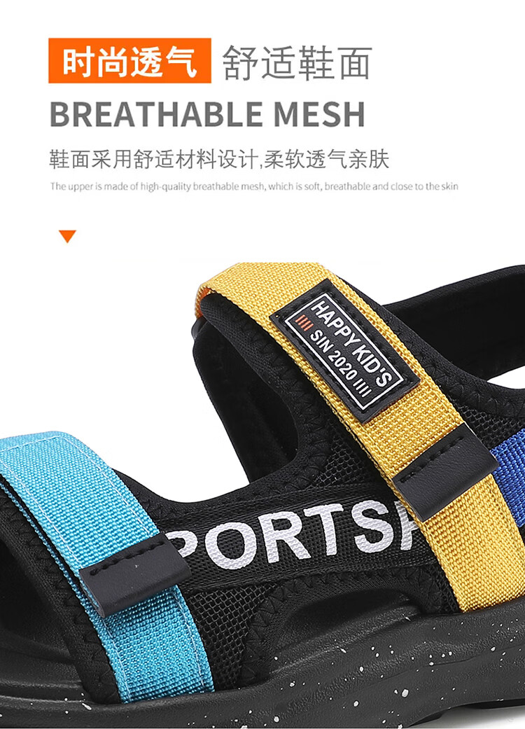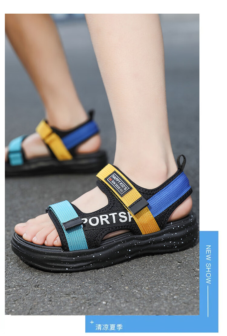 Boys Sandals 2025 Summer New Hollow Children's Beach Shoes Soft Sole Non-Slip Handsome Middle and Large Children Open Toe Sandals HBL2507/Black Size 38 Standard Size
