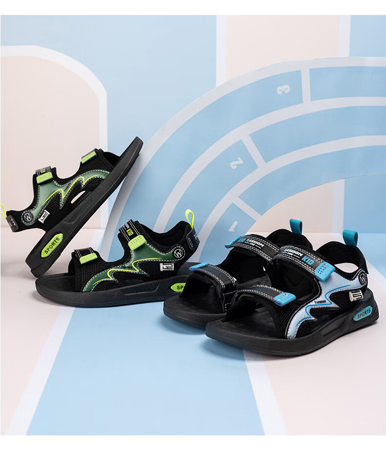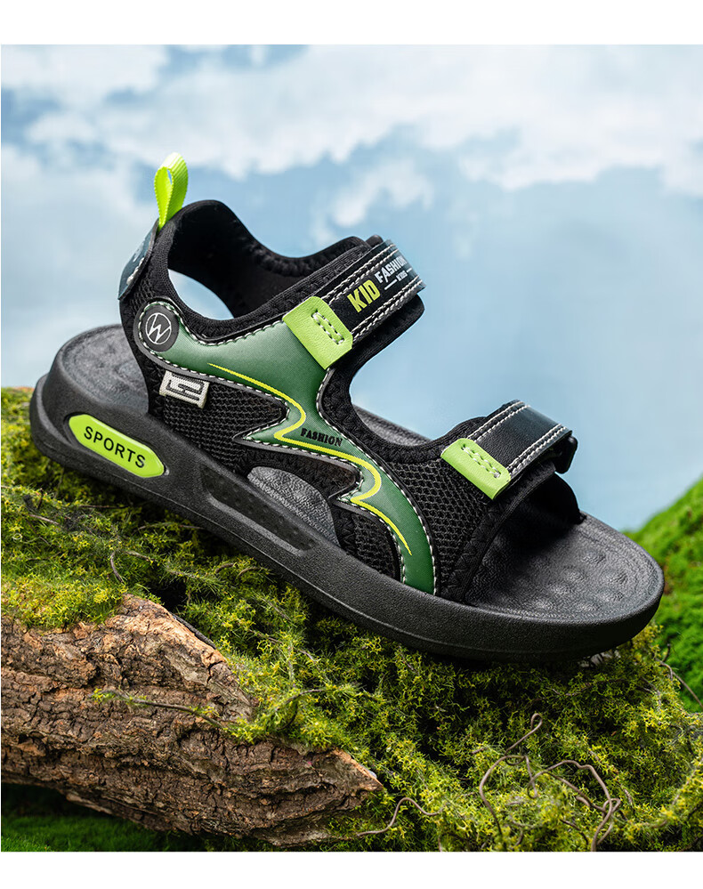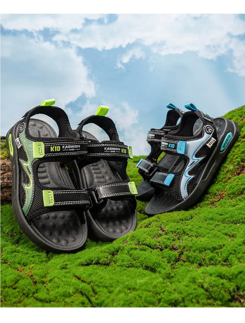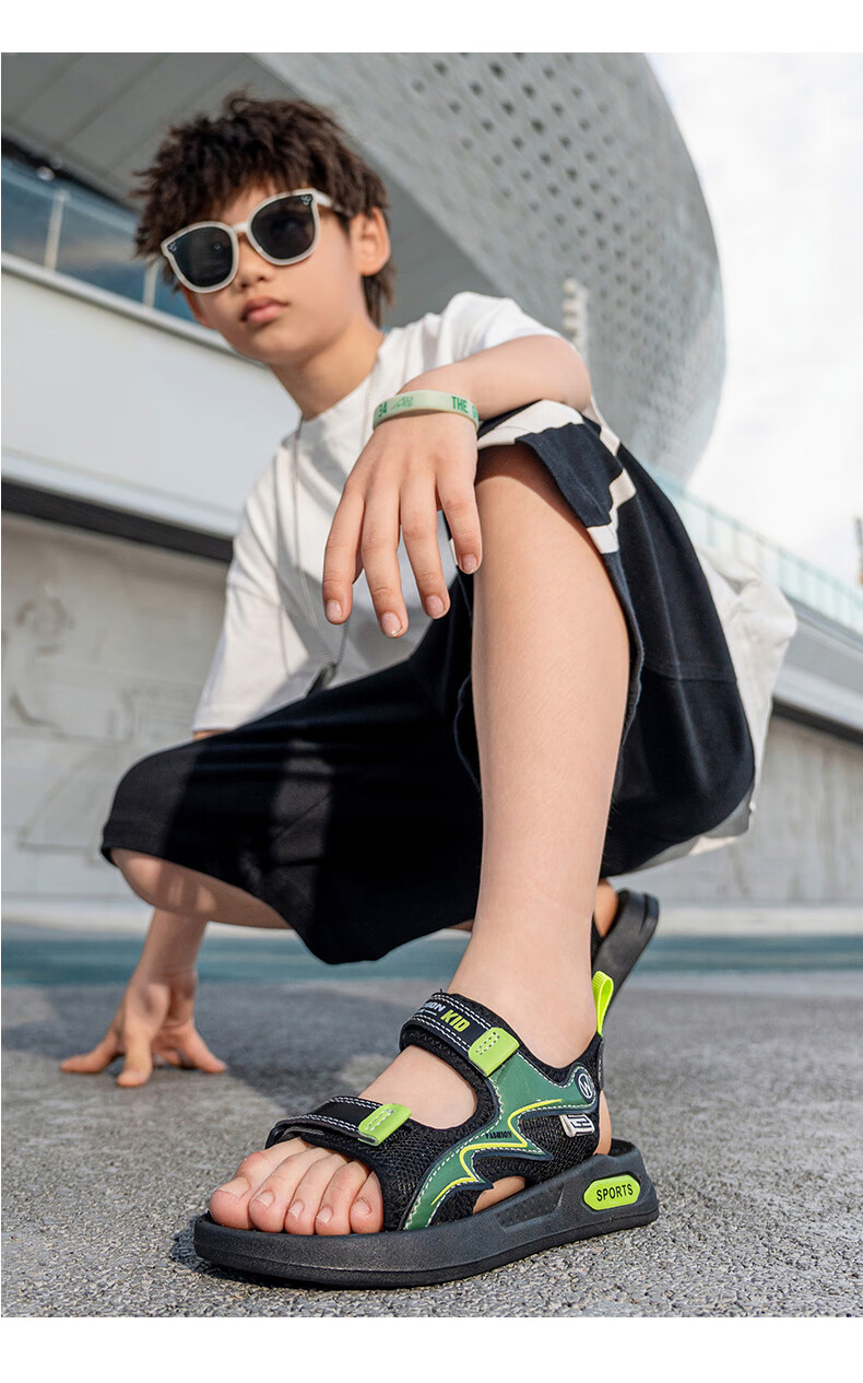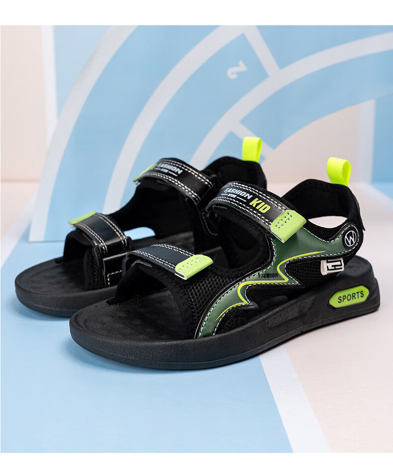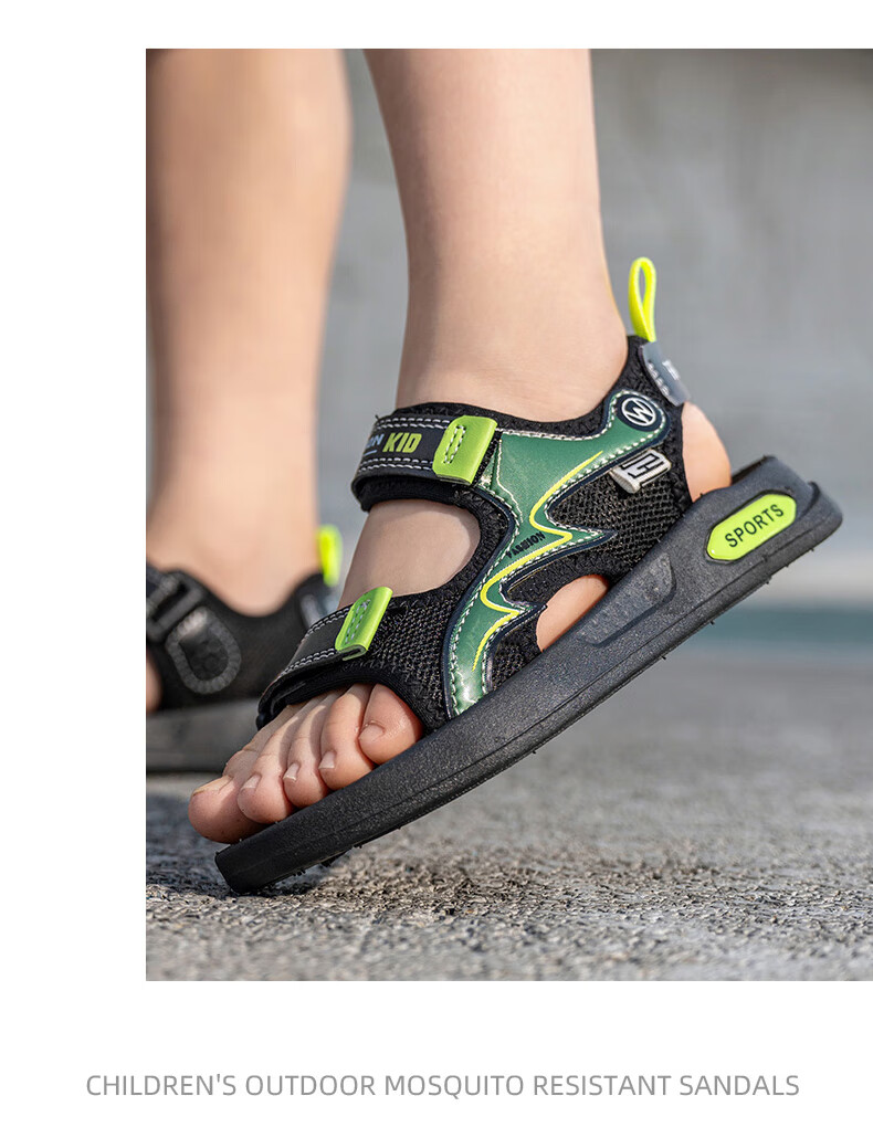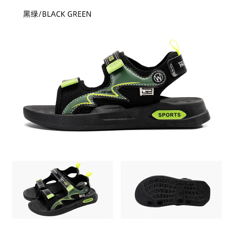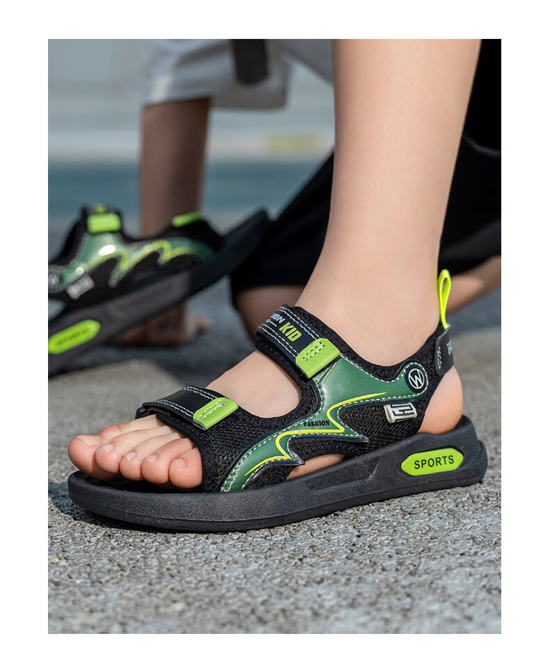 Boys' Sandals 2025 Summer New Open-toe Beach Shoes for Middle and Large Children, Soft Sole Non-Slip Children's Sports Sandals HBL809/Black Green Size 37 Standard Size
