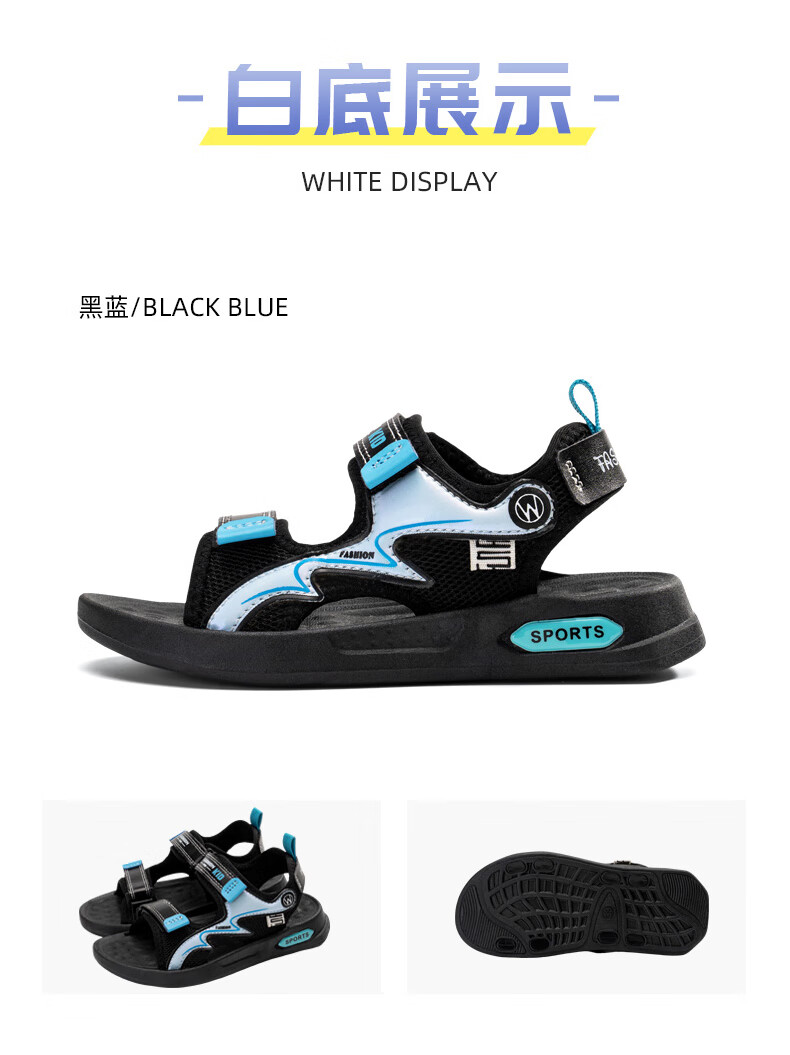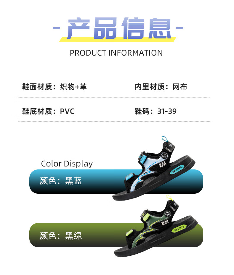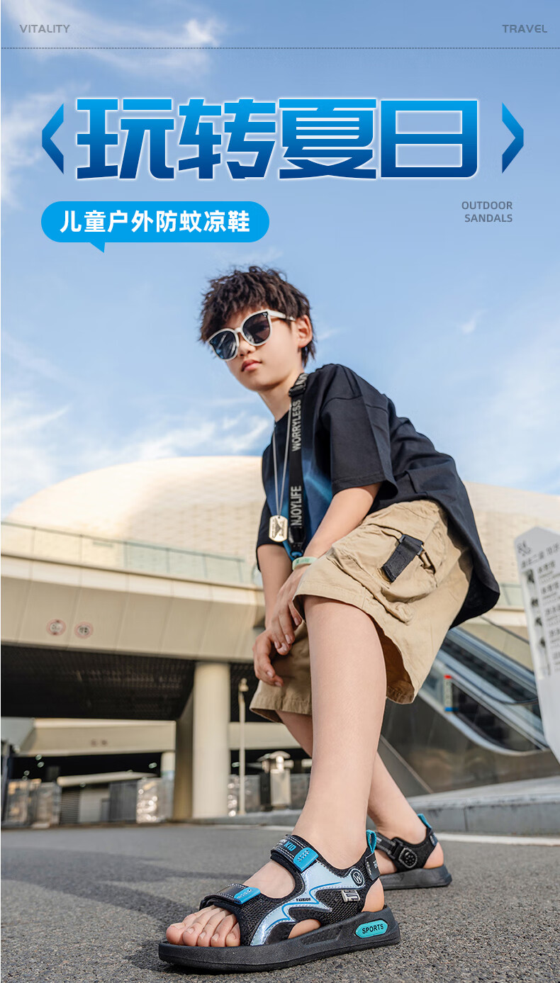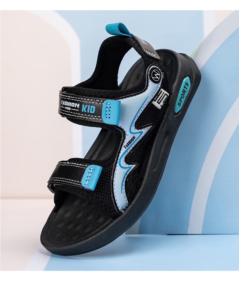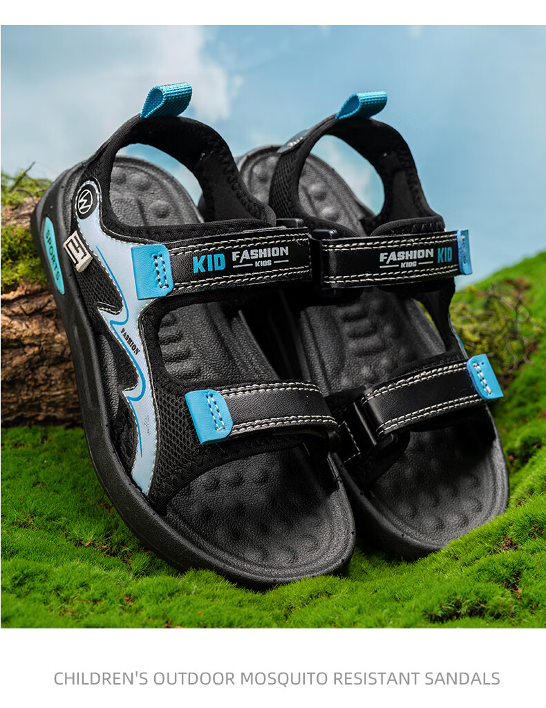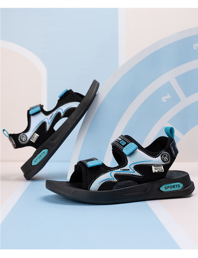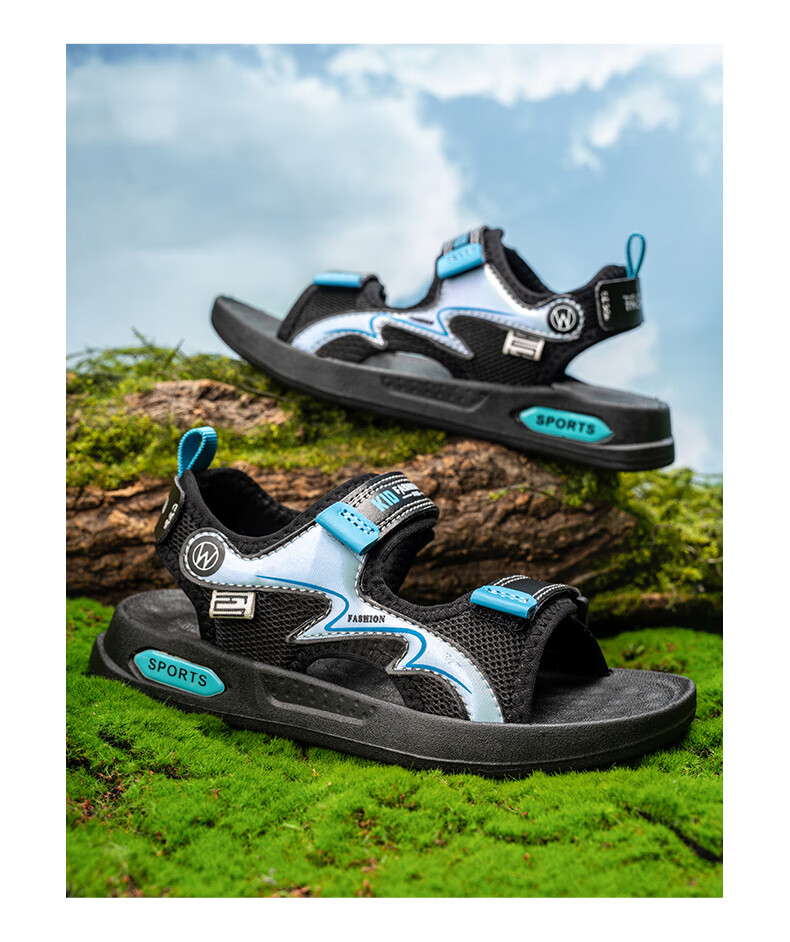 Boys' Sandals 2025 Summer New Open-toe Beach Shoes for Middle and Large Children, Soft Sole Non-Slip Children's Sports Sandals HBL809/Black Green Size 37 Standard Size