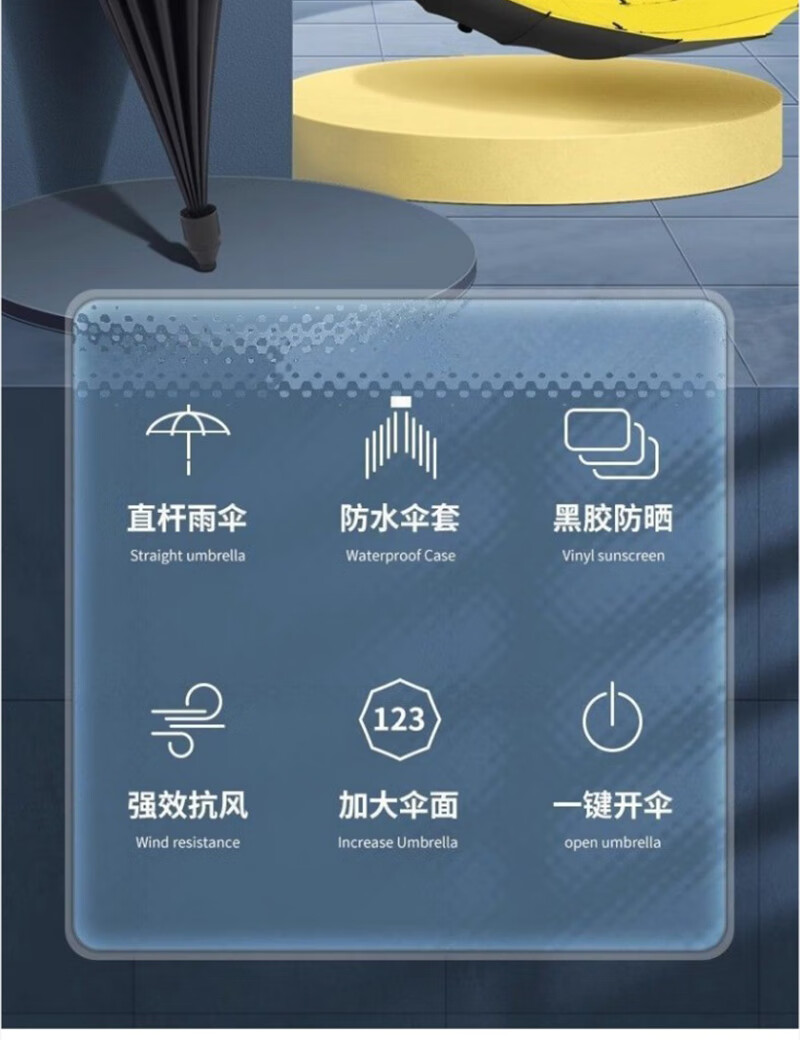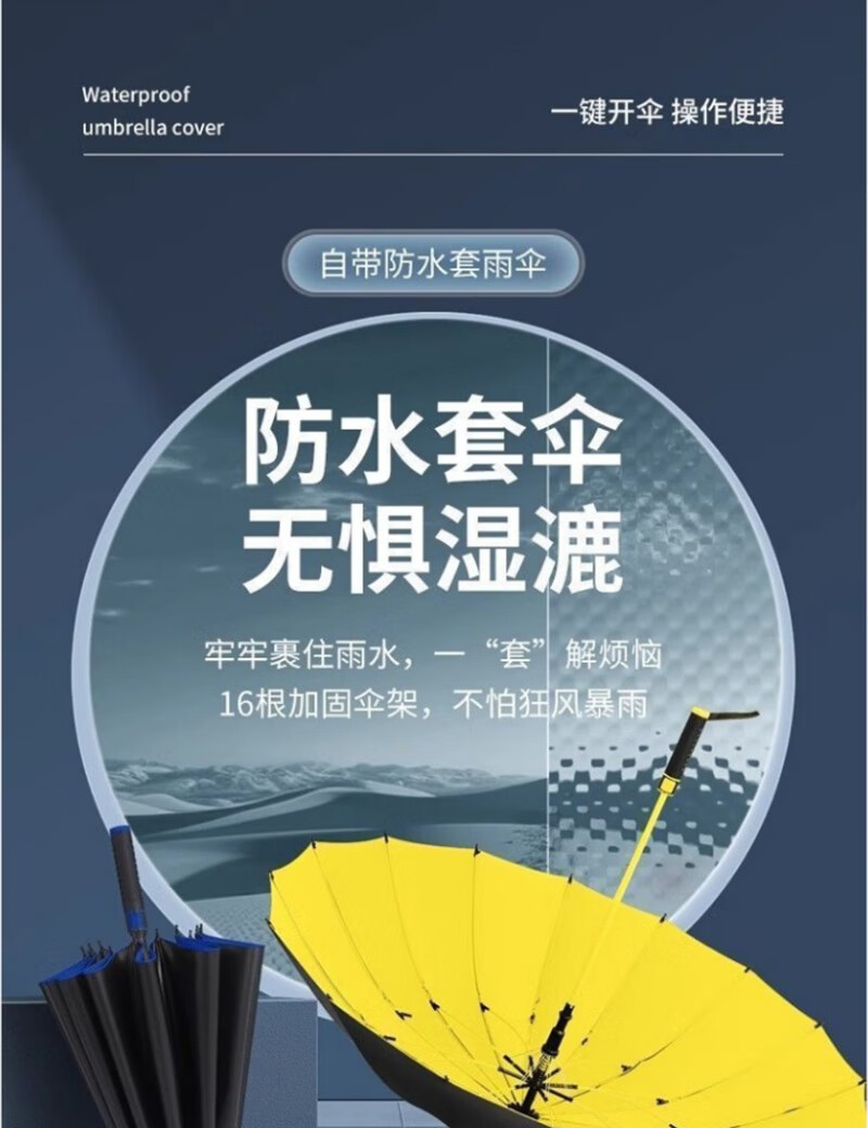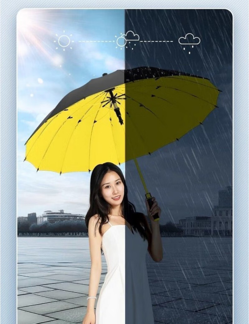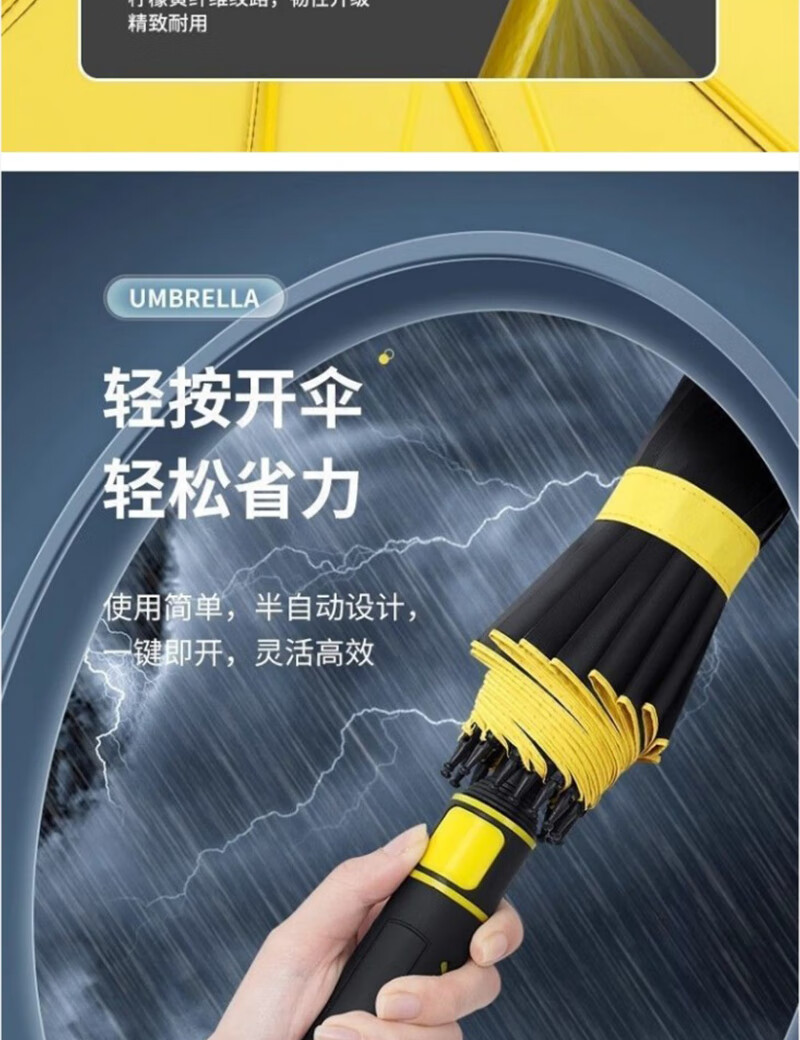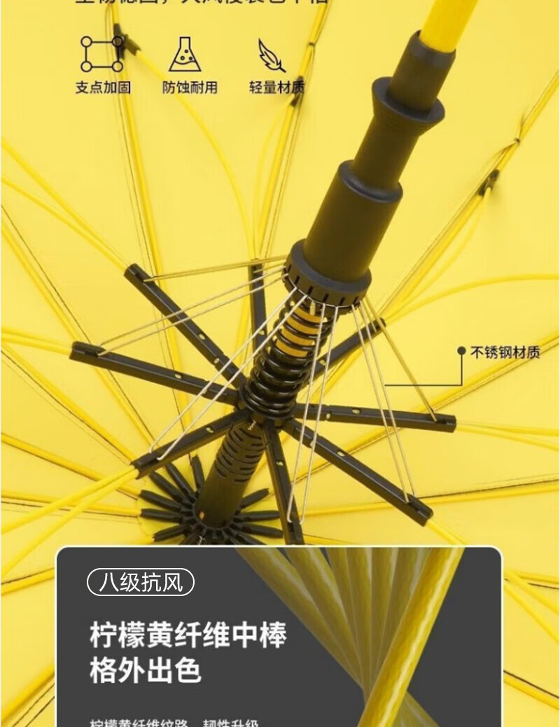 Enlarged bold golf waterproof cover black plastic rain or shine umbrella storm umbrella extra large three-person umbrella sun protection ultraviolet rays enlarged and strengthened yellow straight handle