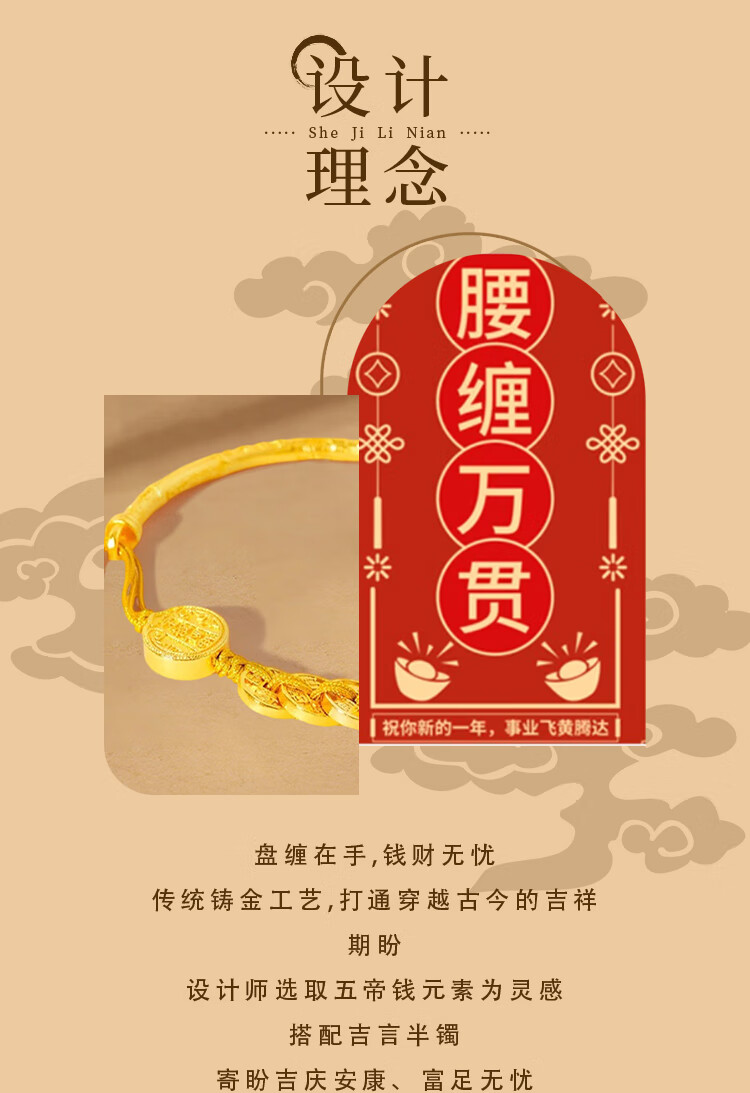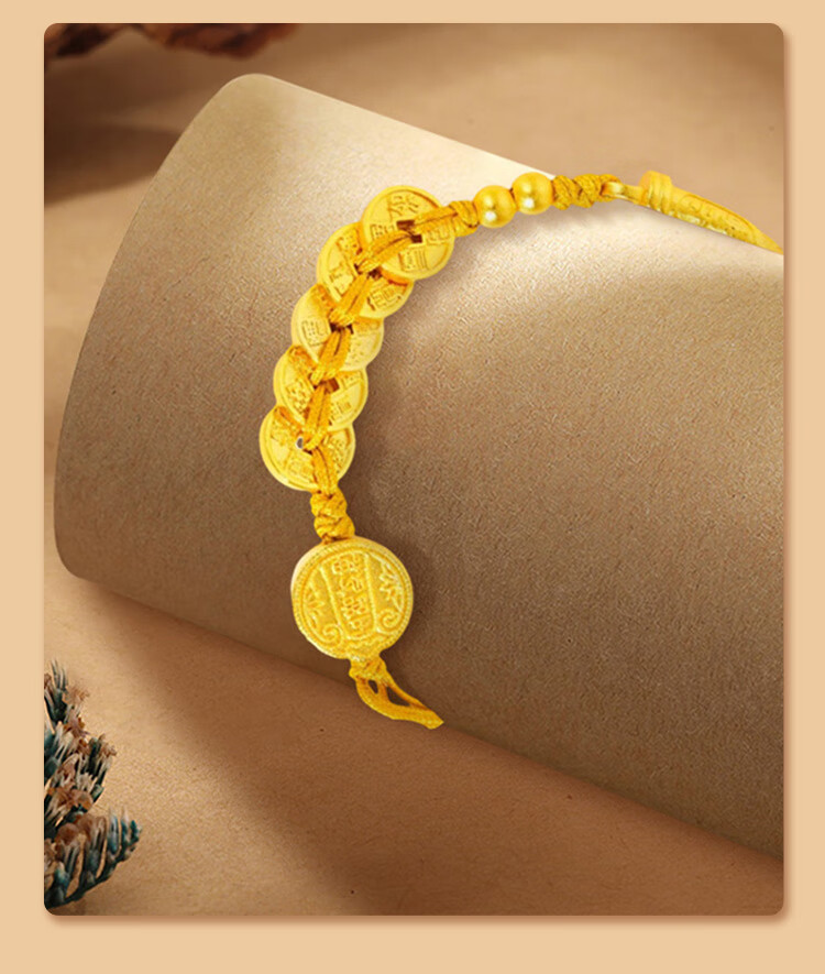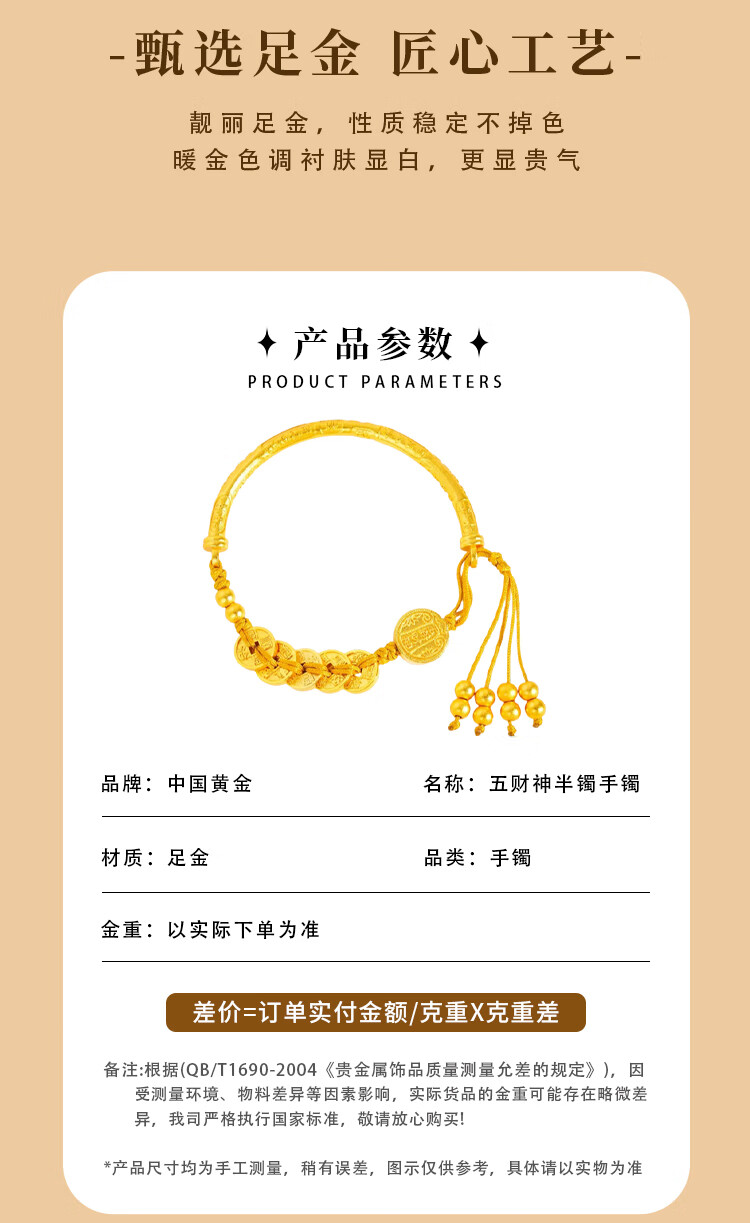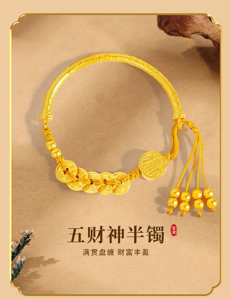 CHINA GOLD Gold Bracelet Women's Pure Gold Five Gods of Wealth Half Bracelet Tanabata Valentine's Day Birthday Gift for Wife and Mom Five Gods of Wealth Half Bracelet + Brand Gift Box 2.35g