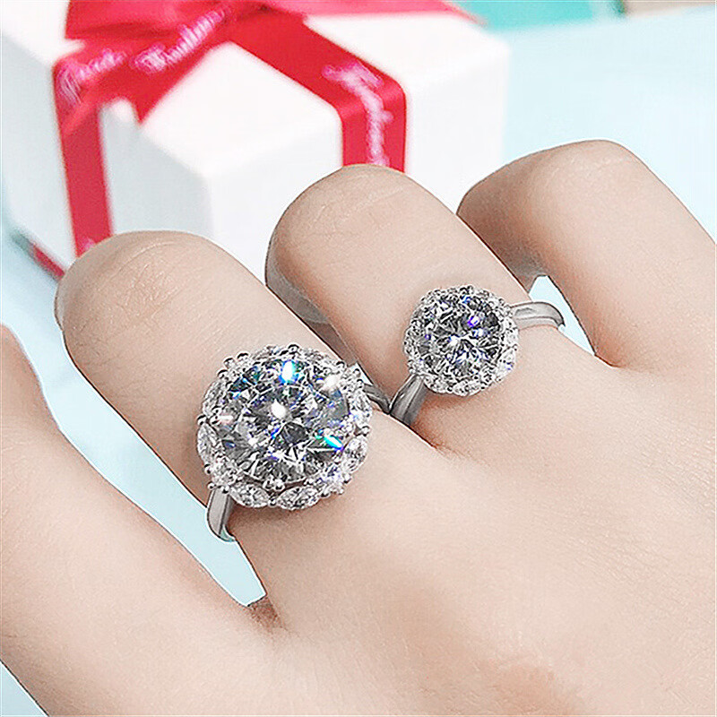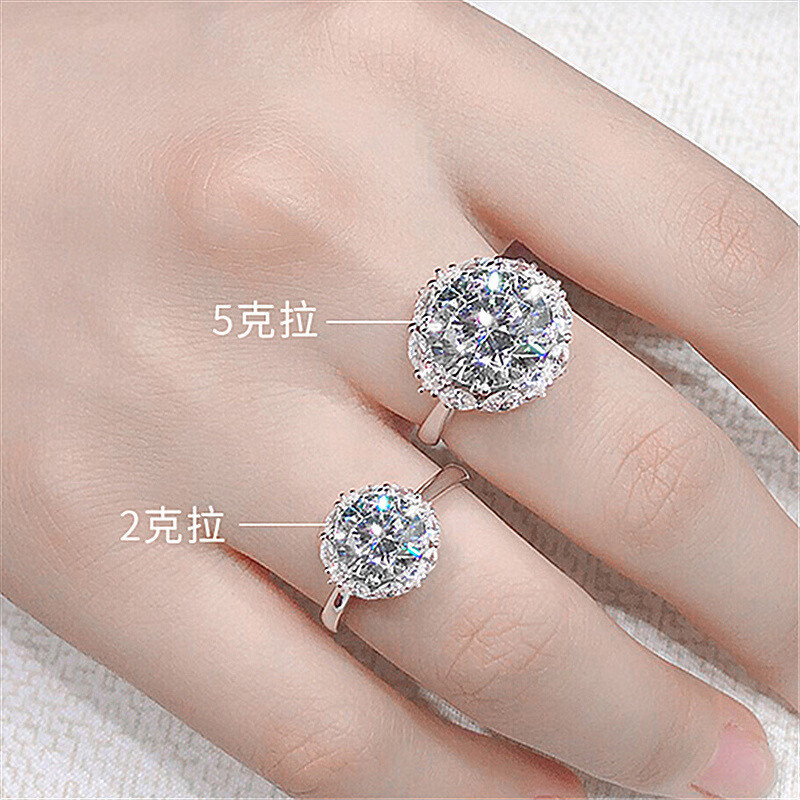 Home of Diamonds Henan Diamond Shangqiu Diamond Henan Artificial Diamond Ring Extra Large Pigeon Egg 8M Main Moissanite Diamond Ring 2 Carats Opening Adjustable