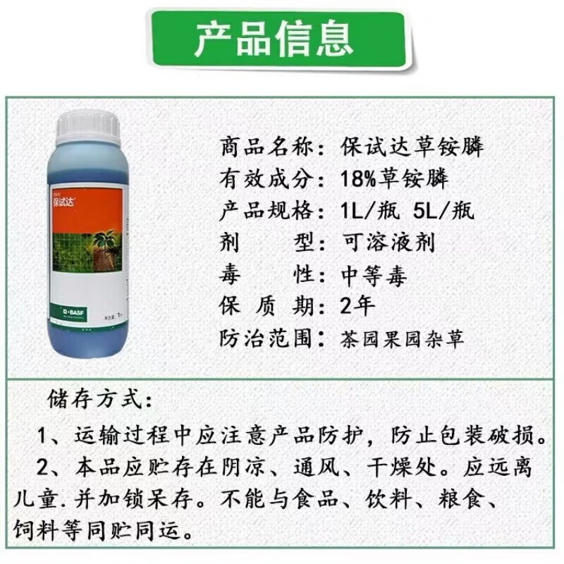 Bath, Germany, guaranteed to reach 18% glufosinate ammonium orchard tea garden herbicide weed non-harming pesticide 1kg