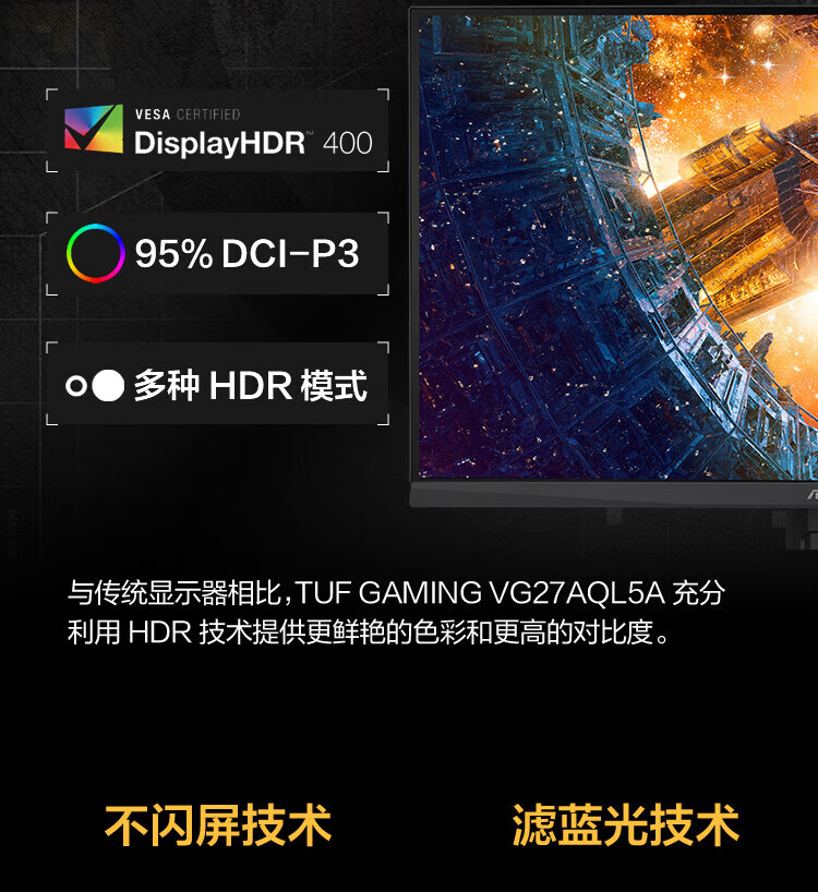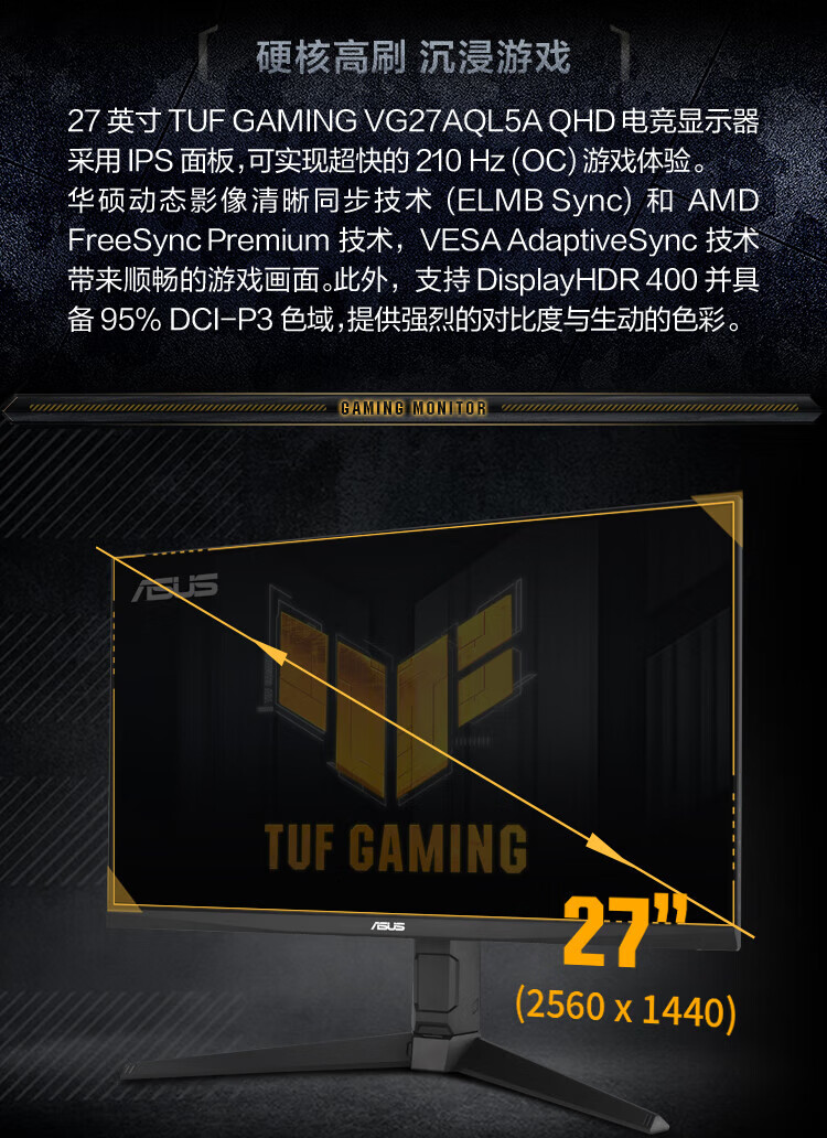 ASUS (ASUS) TUF VG27AQL5A MAX 2K210Hz high brush gaming monitor 27-inch e-sports monitor computer display HDR400 FastIPS VG27AQL5A 2K210Hz MAX