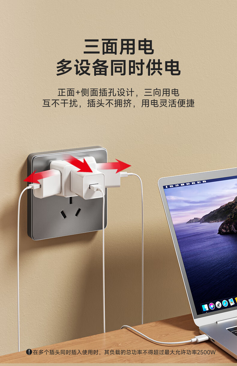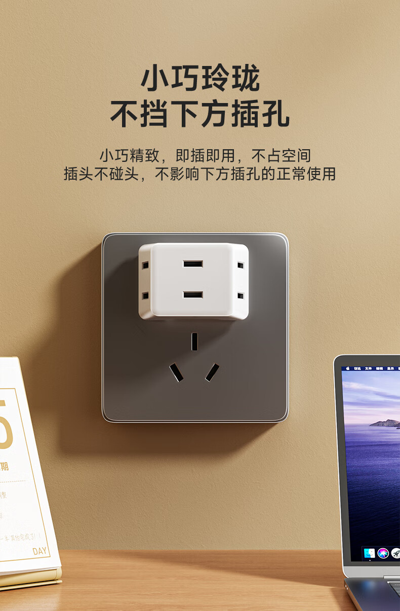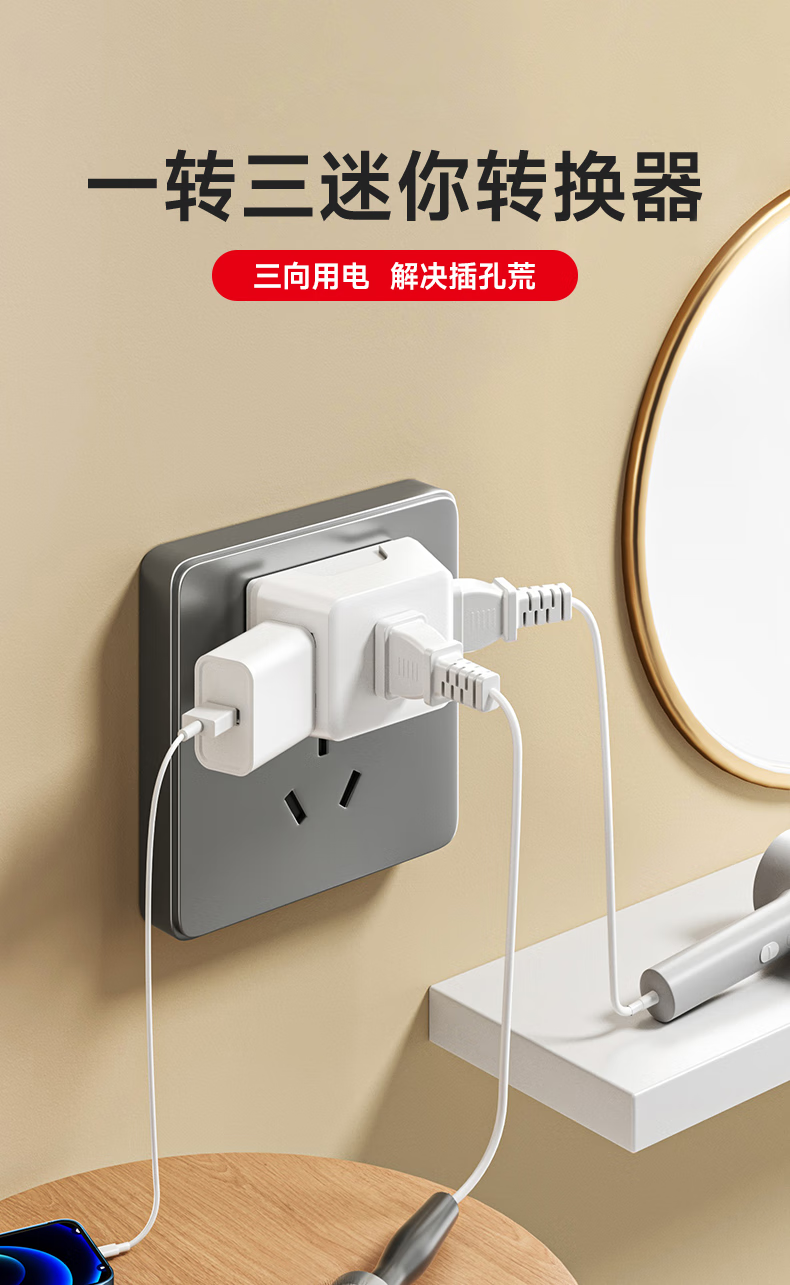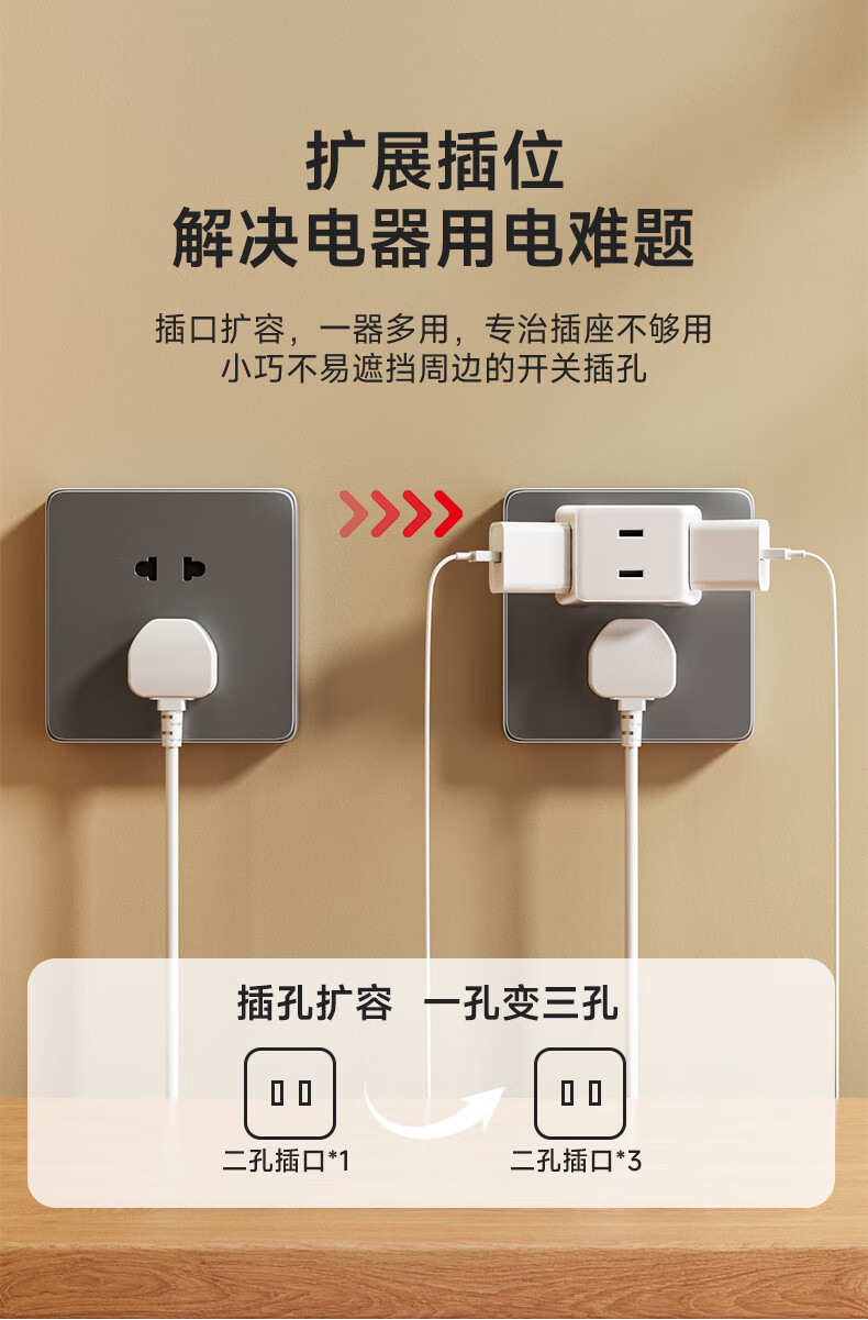 Lengon/Lianggong one-to-three mini two-pin plug and socket converter wall switch two-hole power conversion extension one-to-three dormitory adapter one-to-three two-pin plug without switch