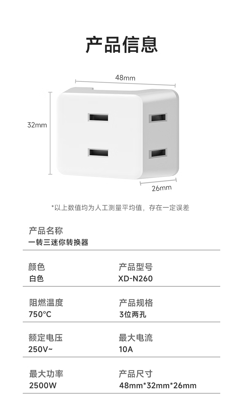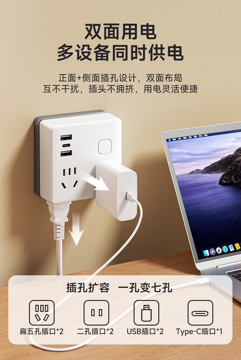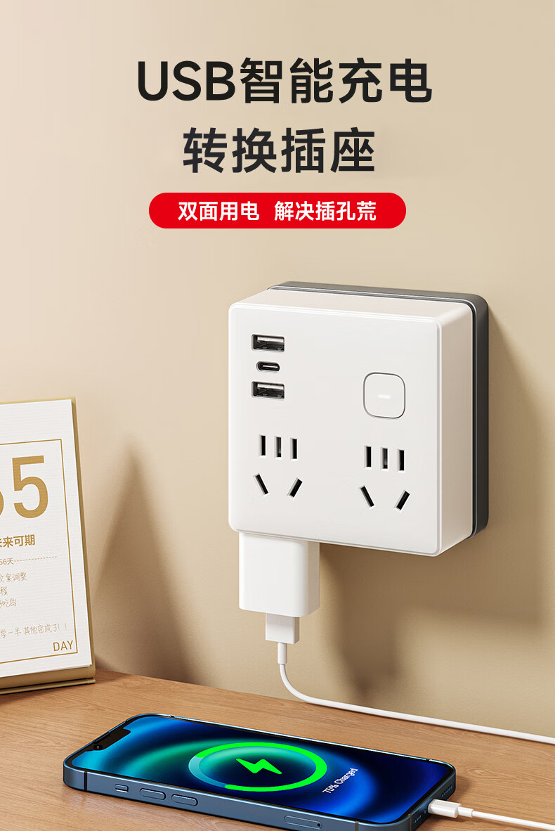 Lengon/Lianggong one-to-three mini two-pin plug and socket converter wall switch two-hole power conversion extension one-to-three dormitory adapter one-to-three two-pin plug without switch