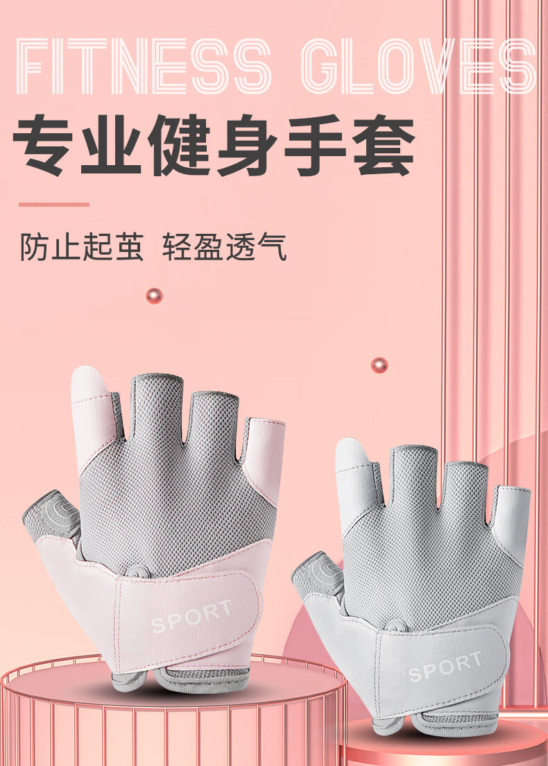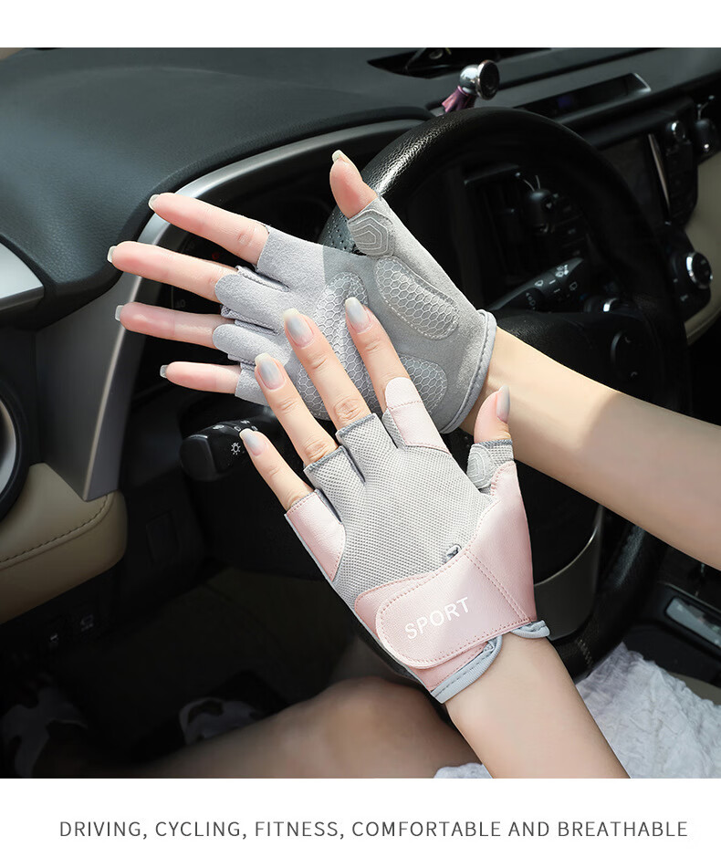 Half-finger gloves summer fitness non-slip bicycle breathable mesh yoga Pilates sports gloves cycling outdoor pink S