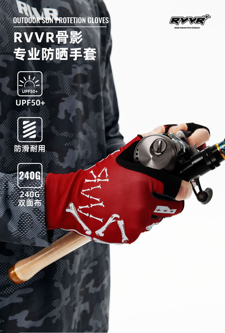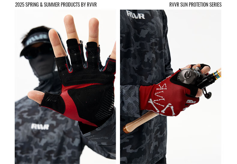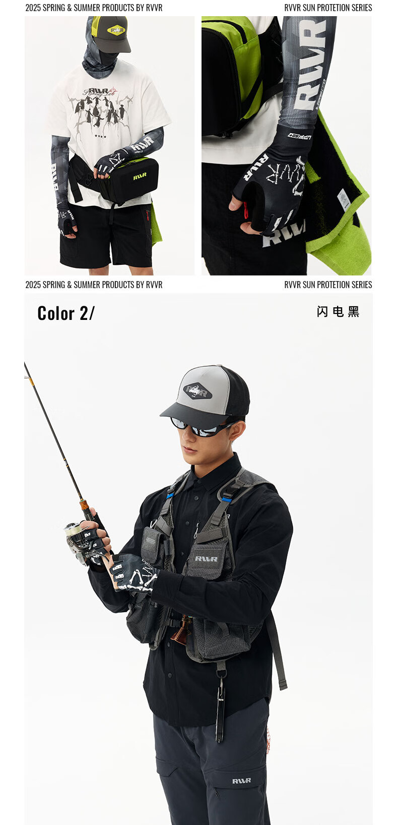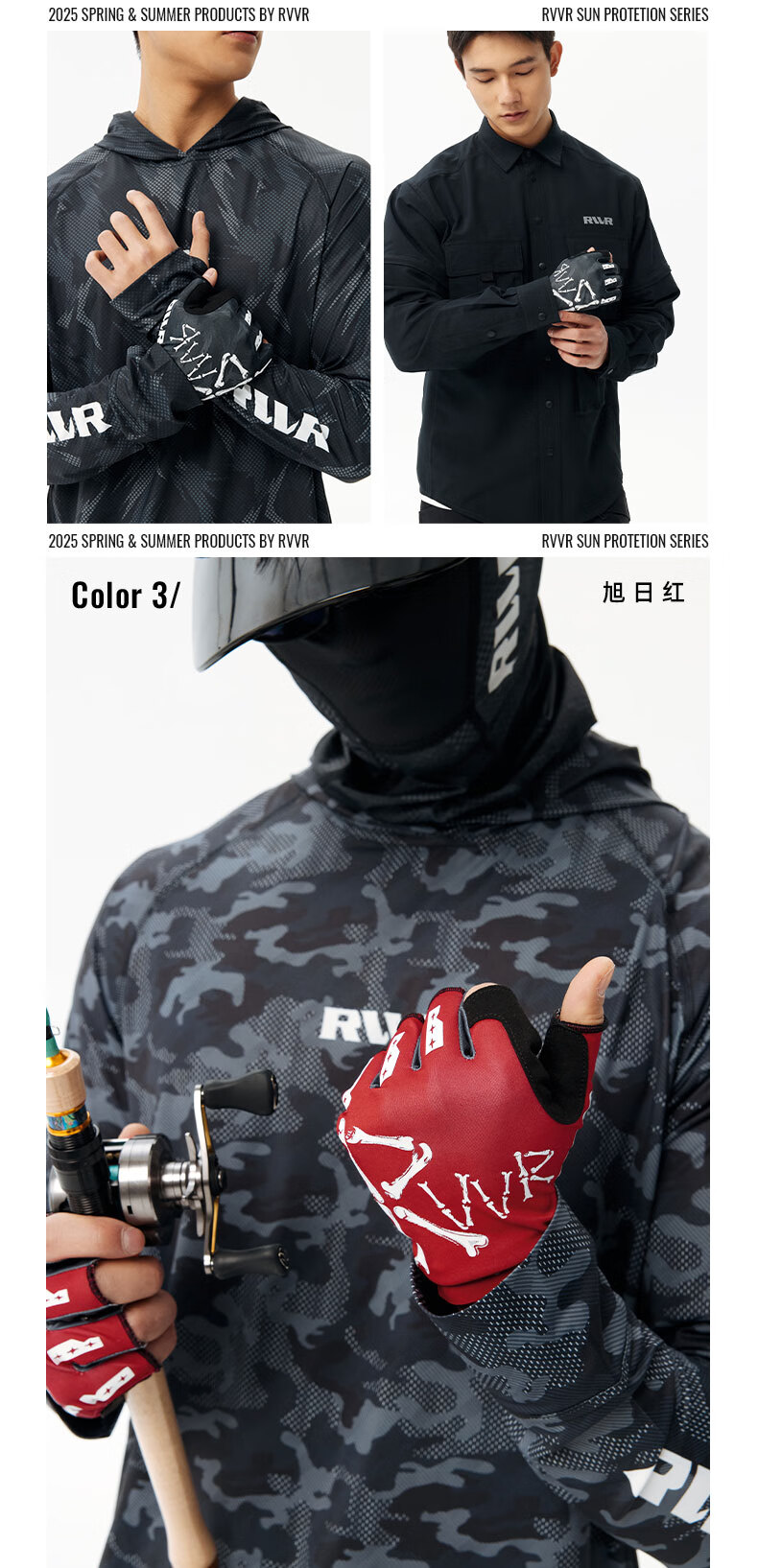 RVVR RG9322 professional sun protection gloves with exposed five-finger lure gloves for men, ice silk breathable quick-drying outdoor fishing gloves, lightning black M