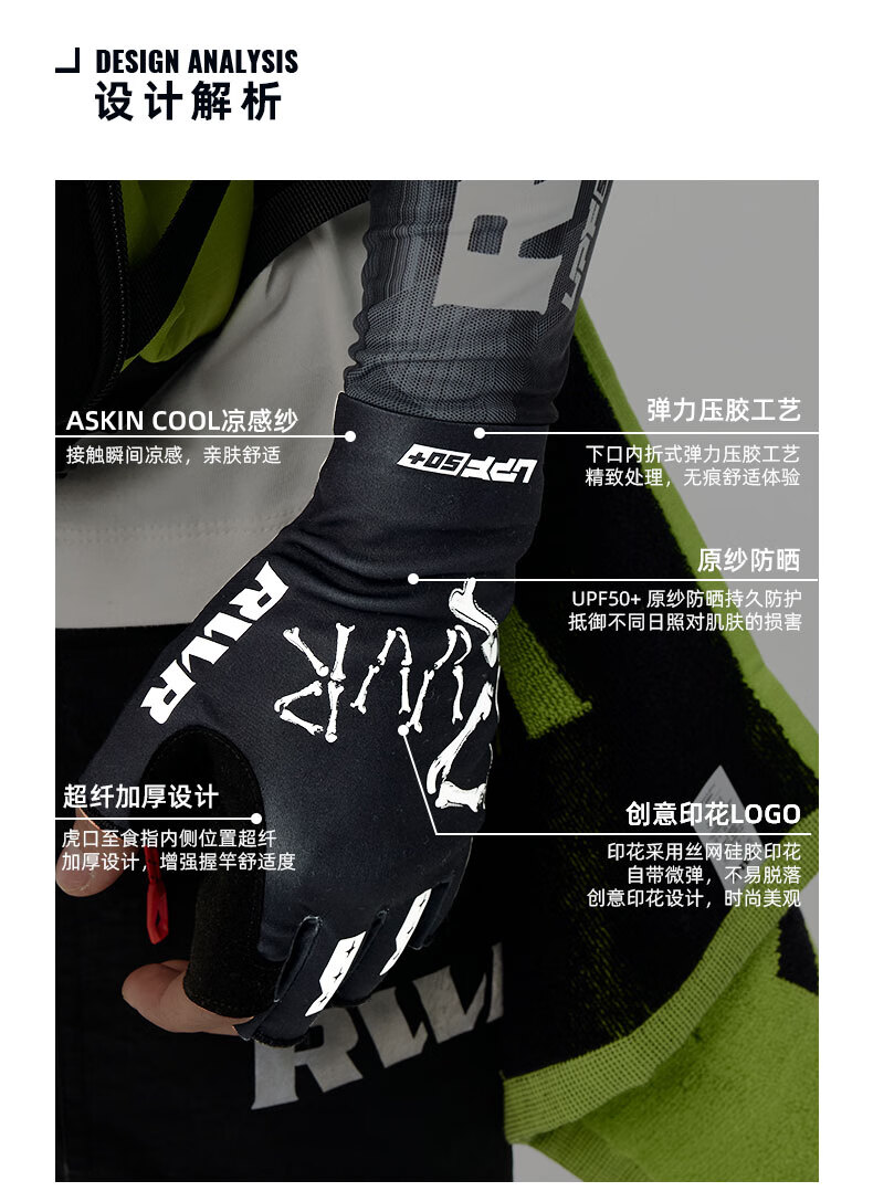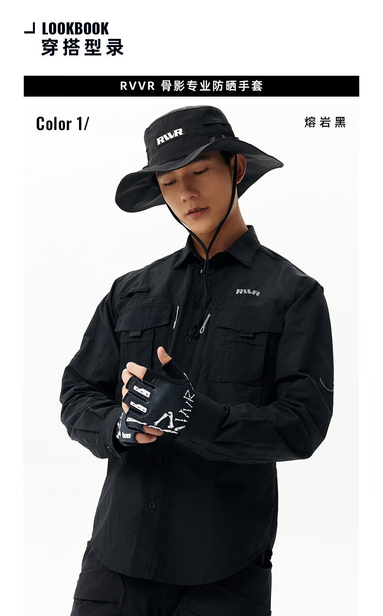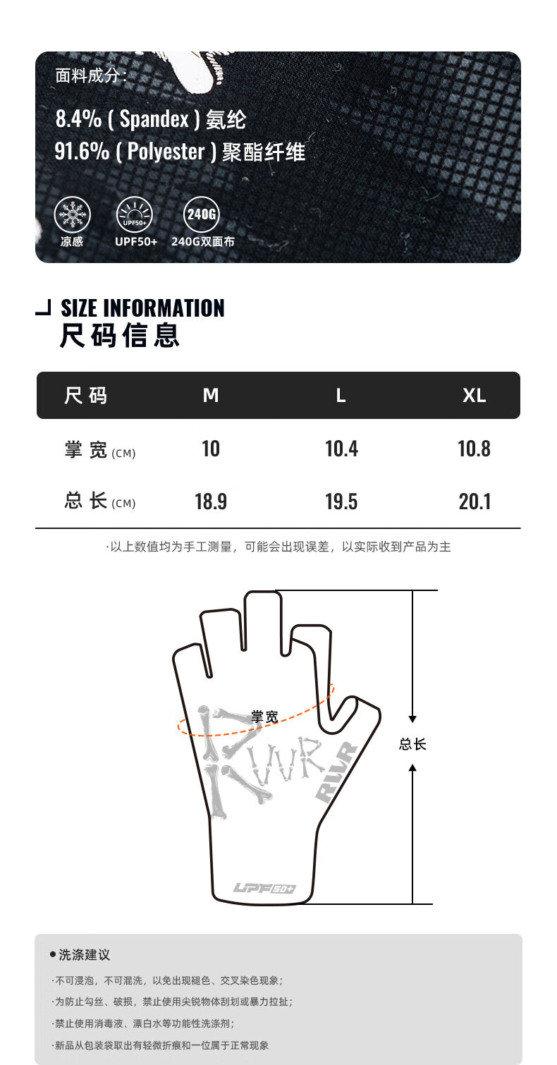 RVVR RG9322 professional sun protection gloves with exposed five-finger lure gloves for men, ice silk breathable quick-drying outdoor fishing gloves, lightning black M