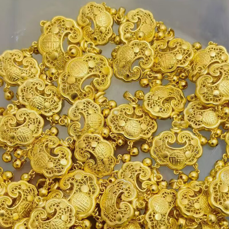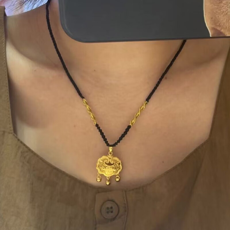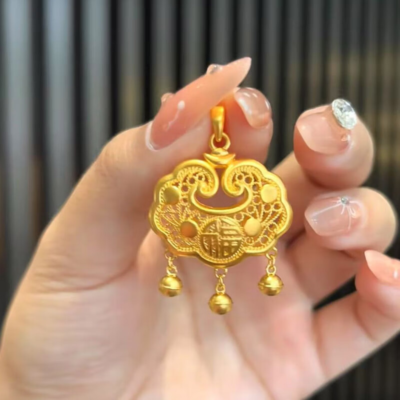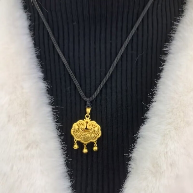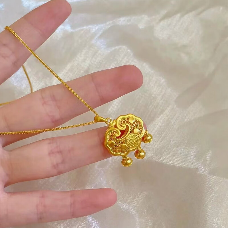 VZZS gold store same style safe lock melon seed buckle gold lock pendant sand gold necklace blessing word gold lock clavicle chain fake gold necklace Chopin chain melon seed buckle middle lock free counter gift box