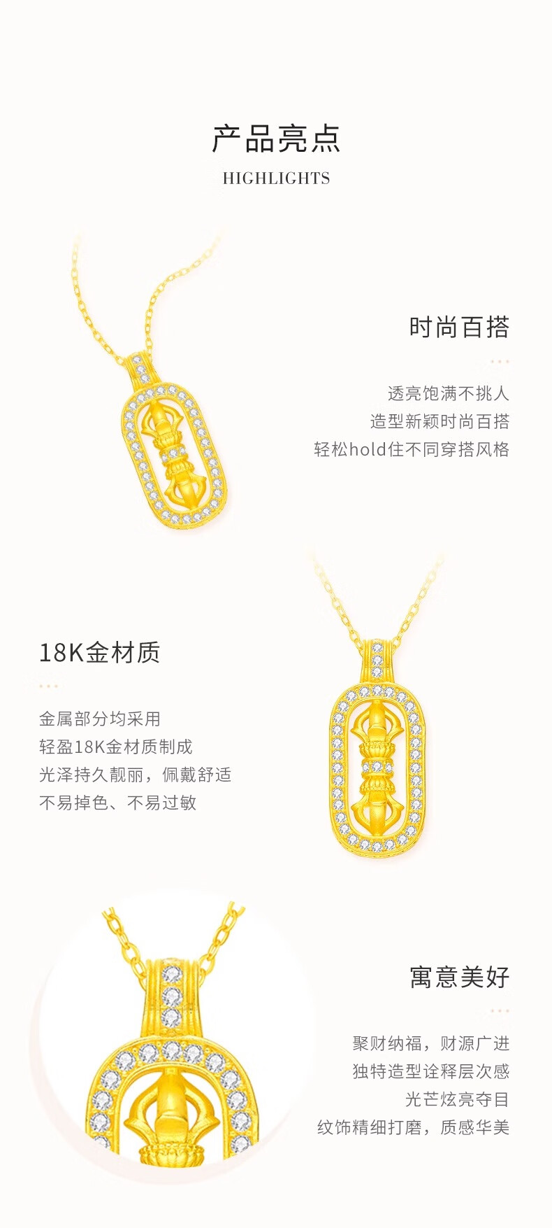 CHINA GOLD Vajra Pendant 18K Gold Women 2025 New Pure K Gold Valentine's Day Birthday Gift for Girlfriend and Wife 18K Gold Vajra Pendant Free Silver Chain Total Weight Approximately 0.4g