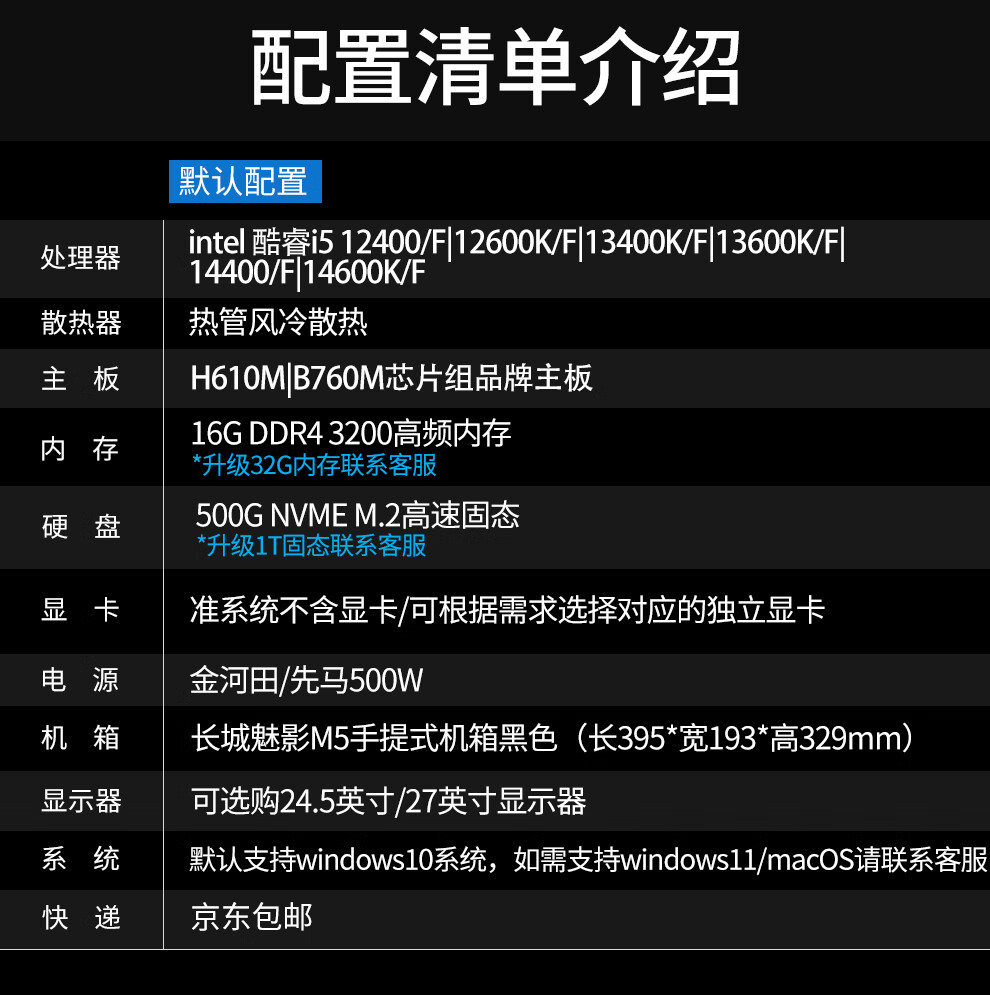 Deep Graphics i5 14600KF/T1000 Designer Black Apple Video Editing Graphic Drawing Esports Game Office Desktop Full Set DIY Assembly Mini Portable Computer Host Hot Selling T400 4G Professional Graphics Card Single Host i5 14600K/F/500G/16G