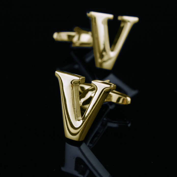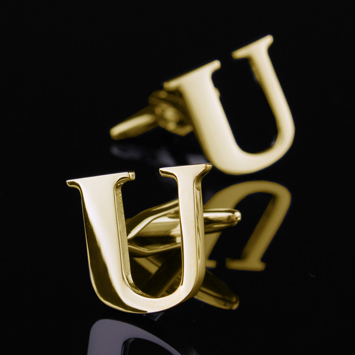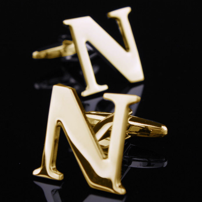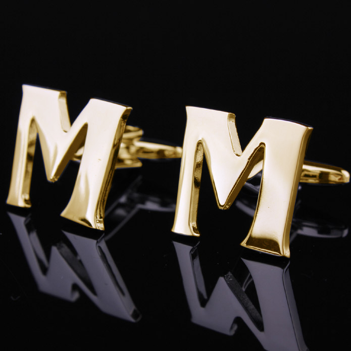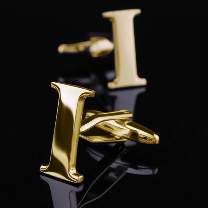 Handsome 26 English letters A-Z cufflinks, gold cufflinks, French cufflinks, men's cufflinks, letter H, gold