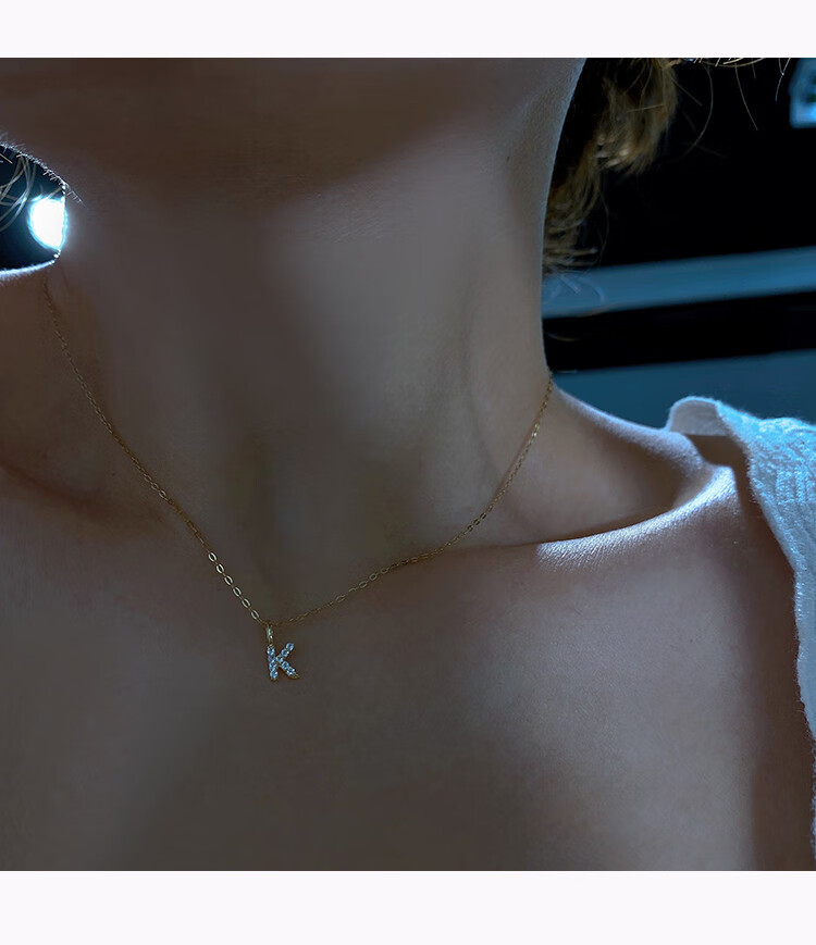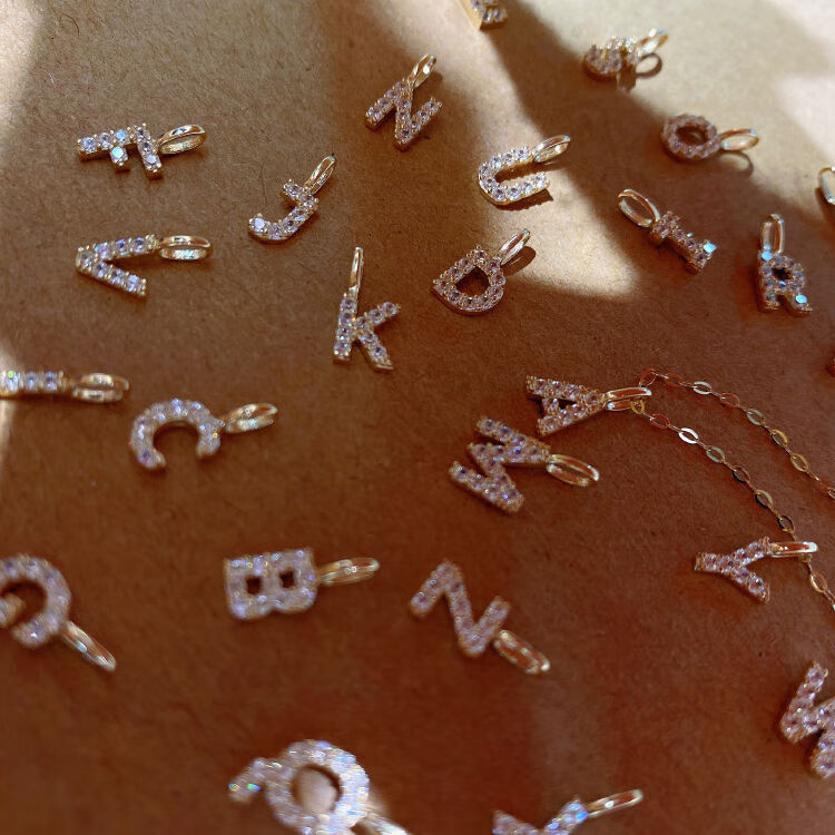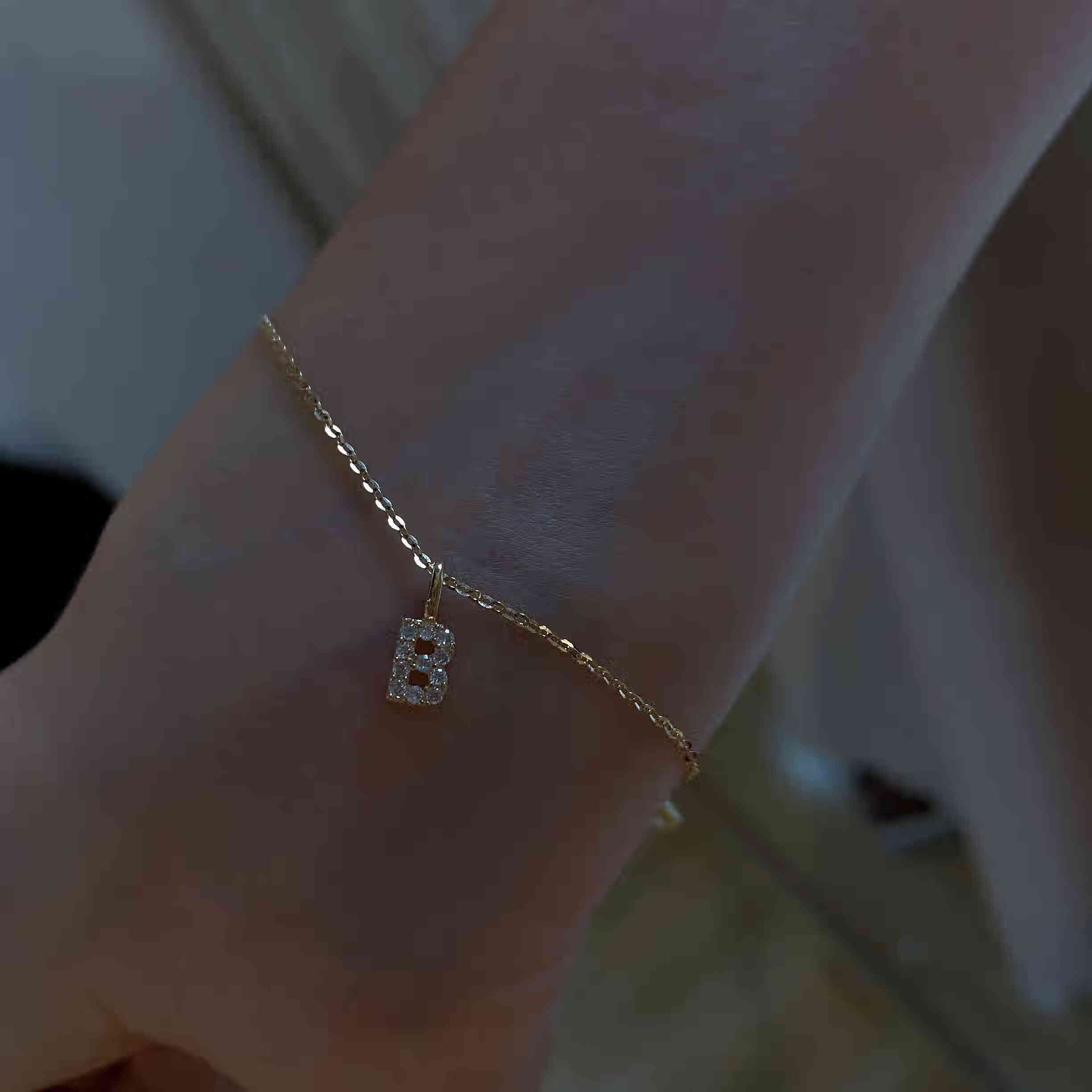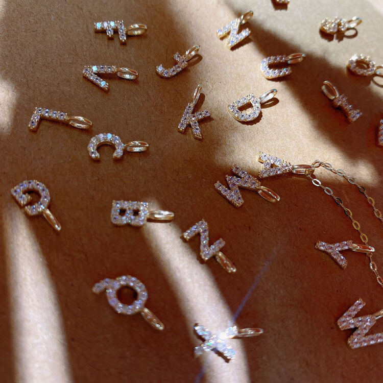 VZZS Seoul k gold light luxury jewelry pure 14K gold zircon inlaid letter pendant necklace accessories gift bracelet pendant C