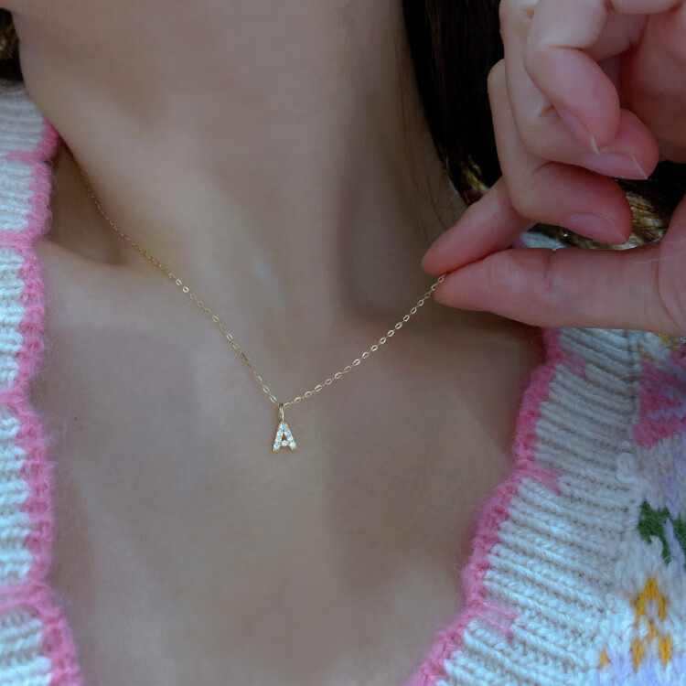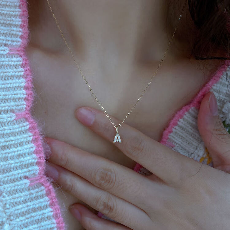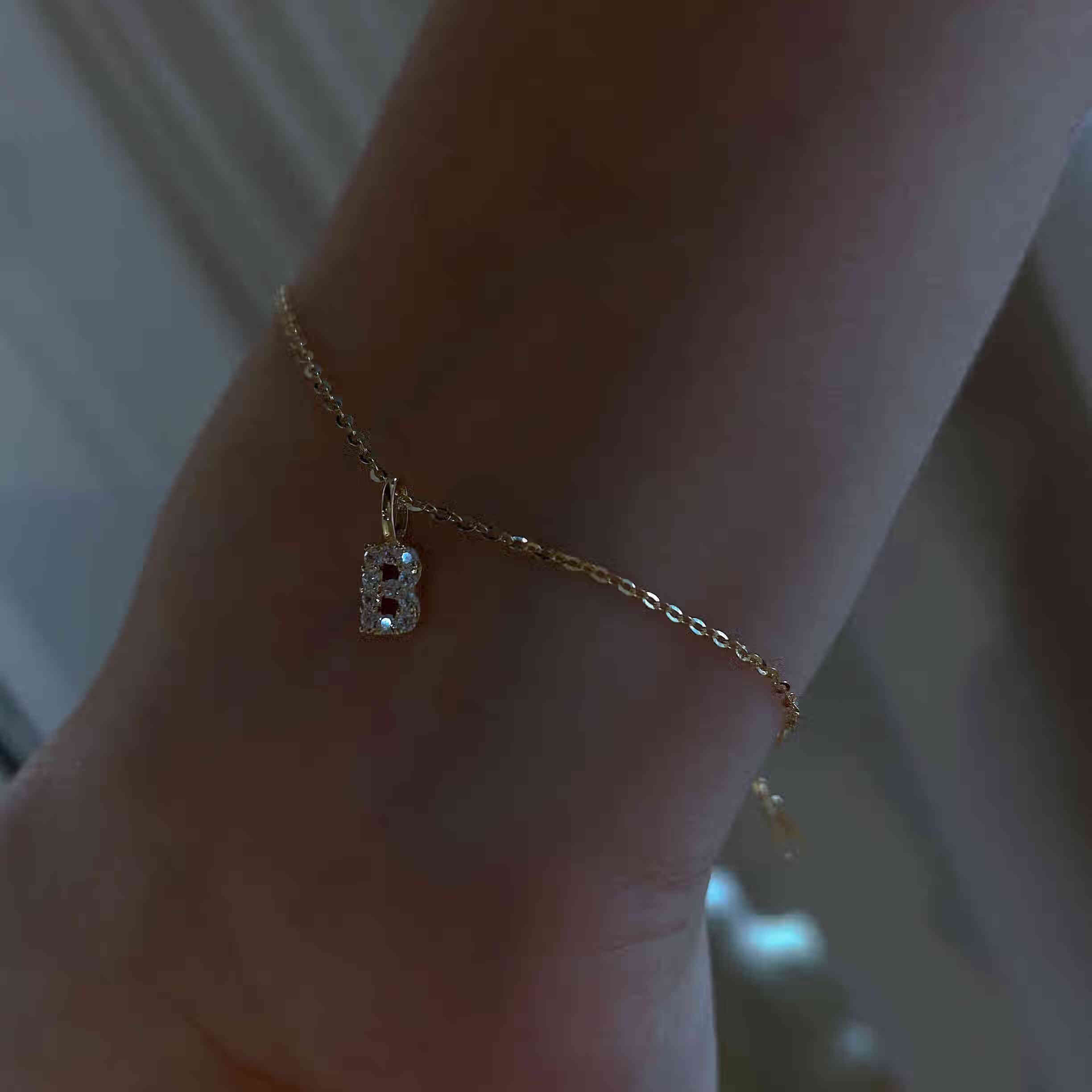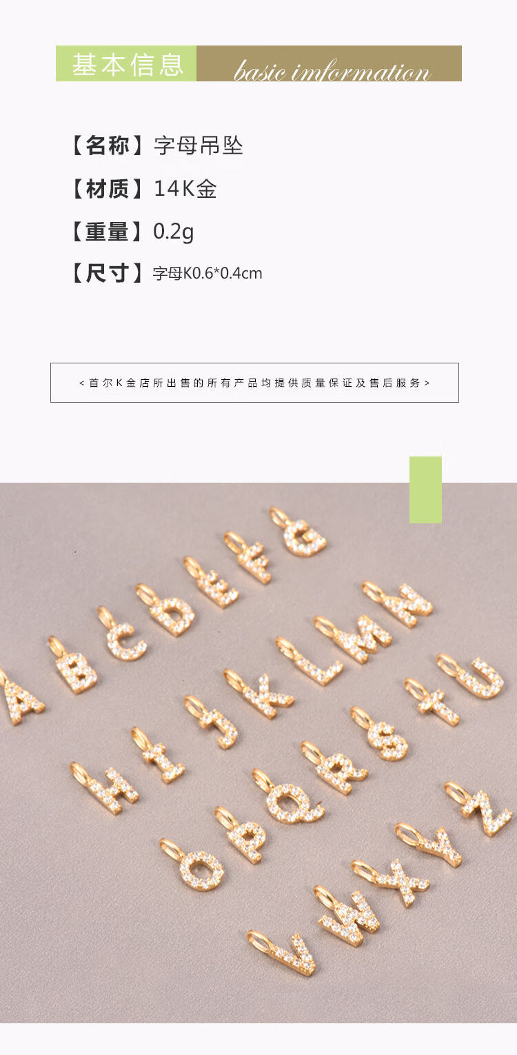 VZZS Seoul k gold light luxury jewelry pure 14K gold zircon inlaid letter pendant necklace accessories gift bracelet pendant C