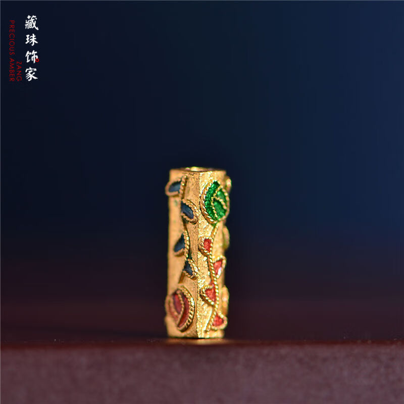 VZZS Tibetan Beads Jewelry House Pure Gold Enamel Burnt Blue Rose Beads Palace Made Ancient Gold Bracelet Pendant Accessories