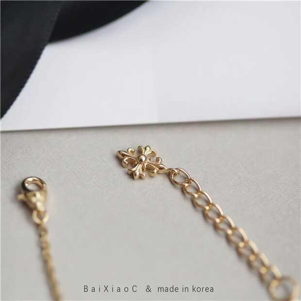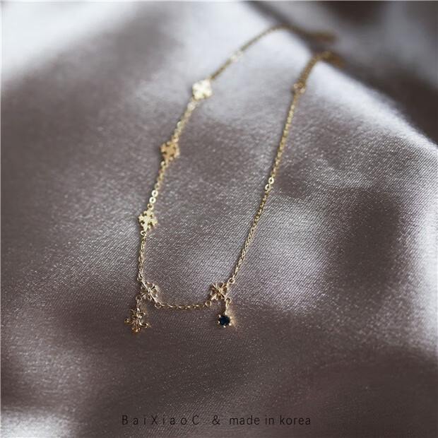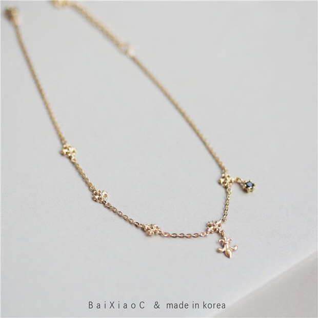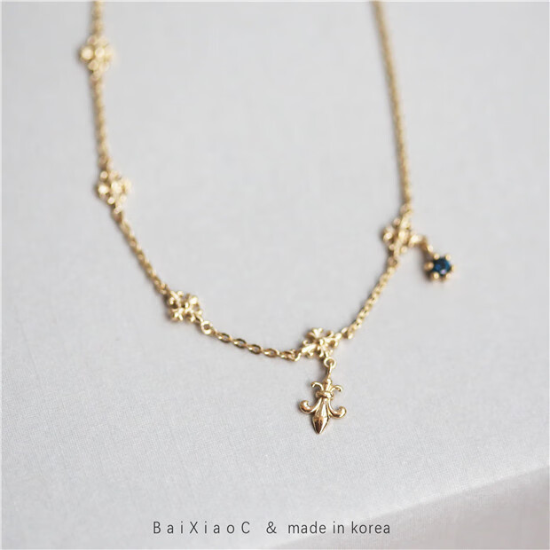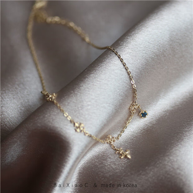 VZZS white small C Korean imported gold jewelry 14K gold anklet retro heavy industry cross blue diamond pendant K gold bracelet bracelet 1 piece