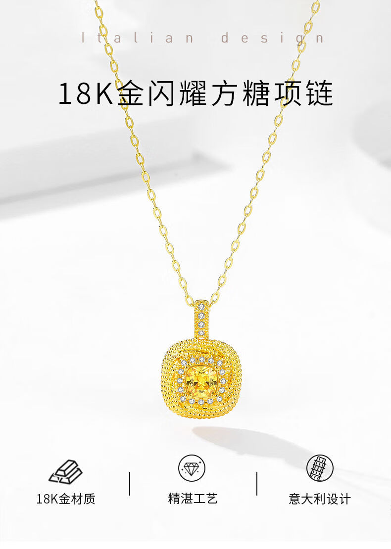 VZZSadhora 18K gold sparkling sugar cube necklace for women niche design temperament versatile K gold pendant clavicle chain 18K gold sparkling sugar cube necklace