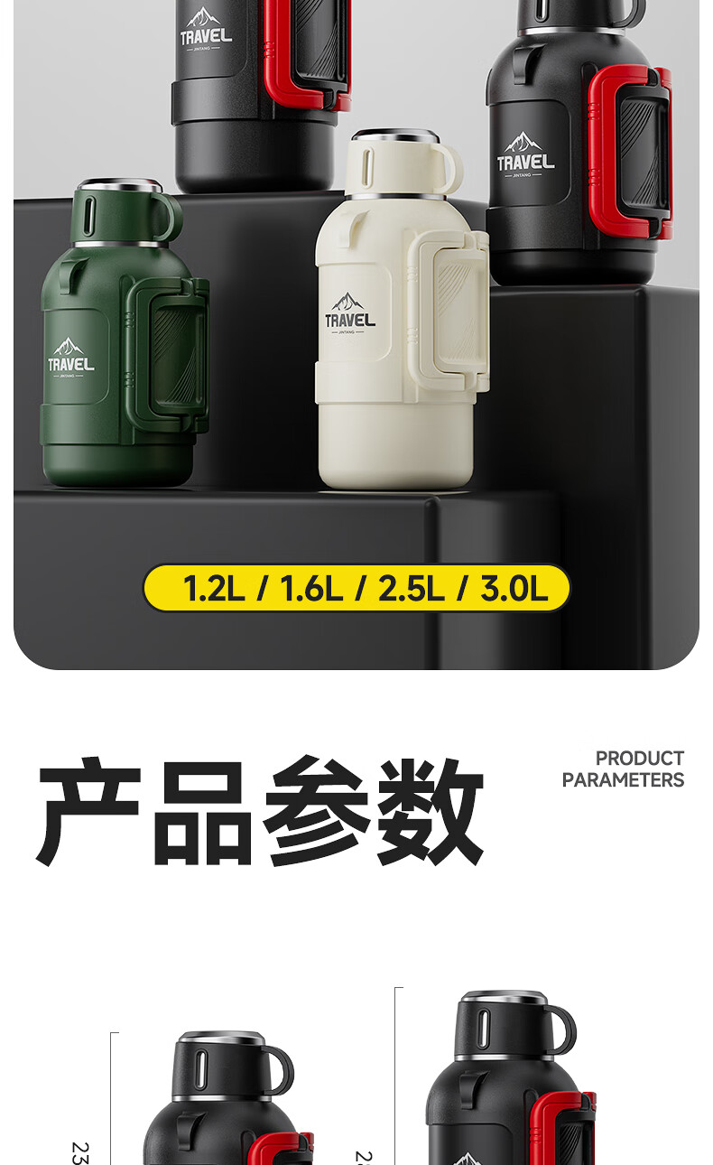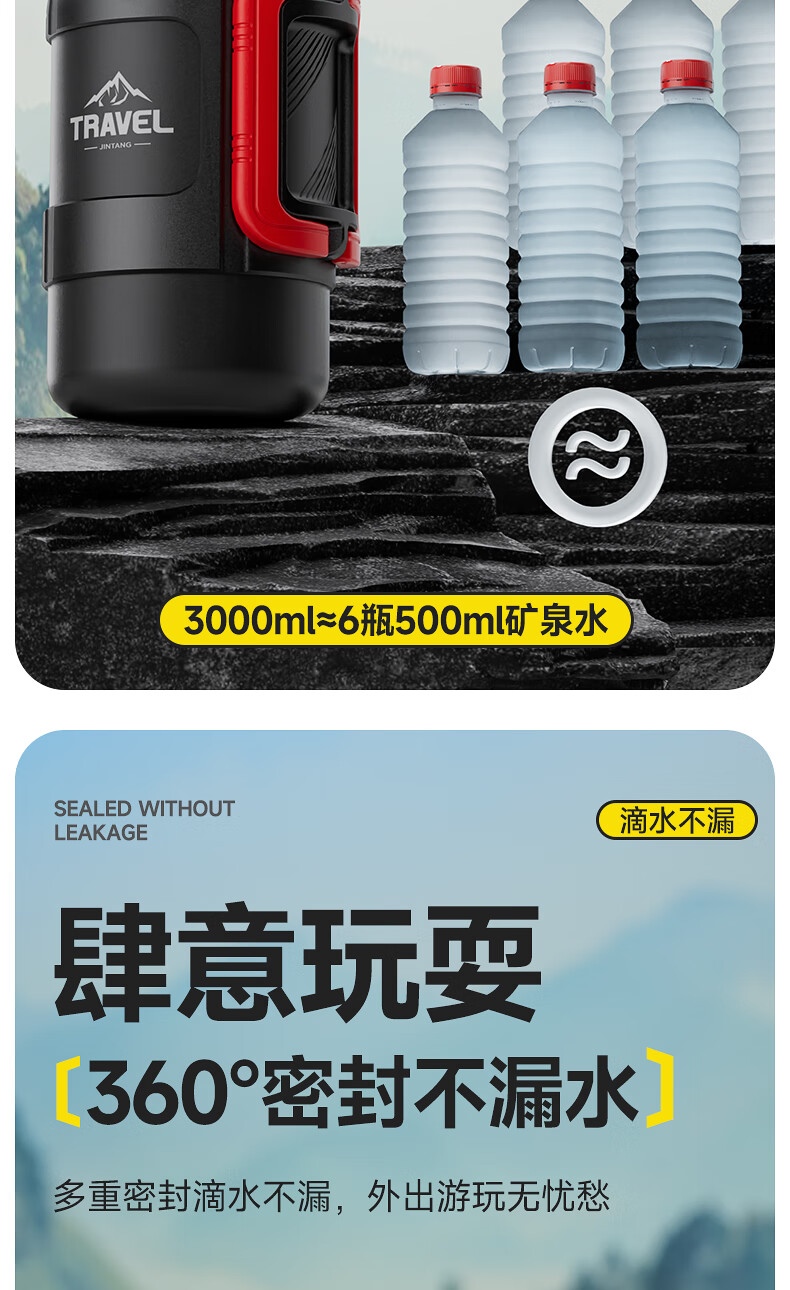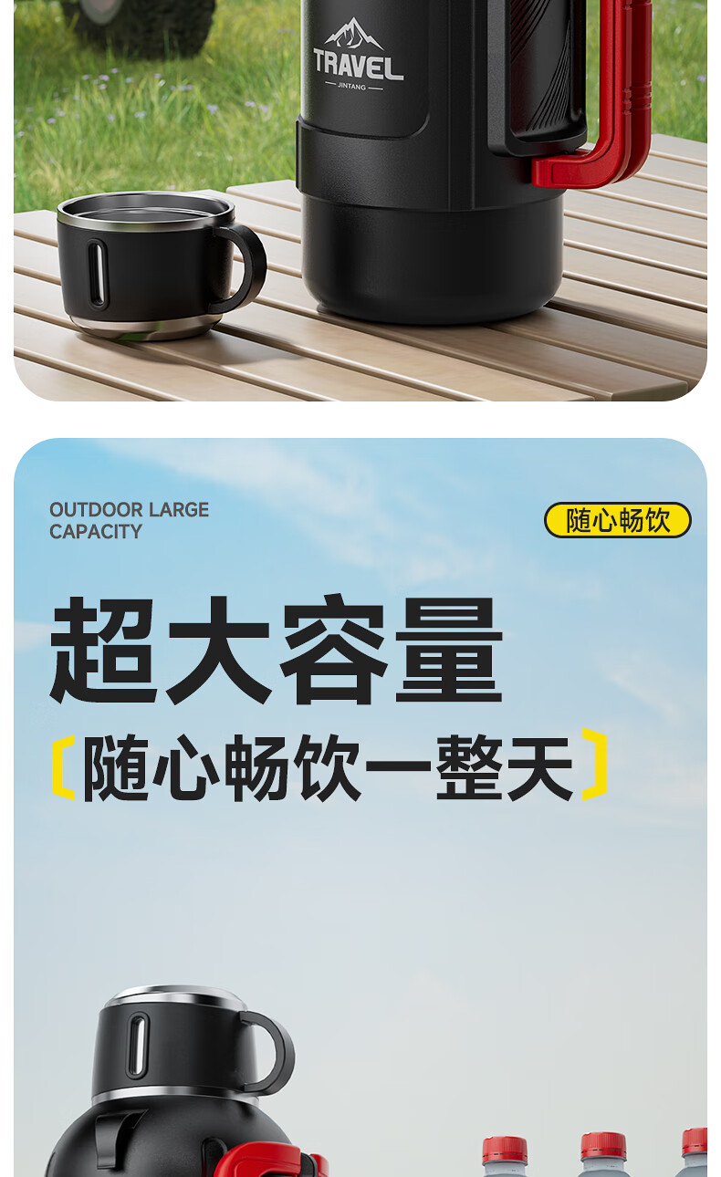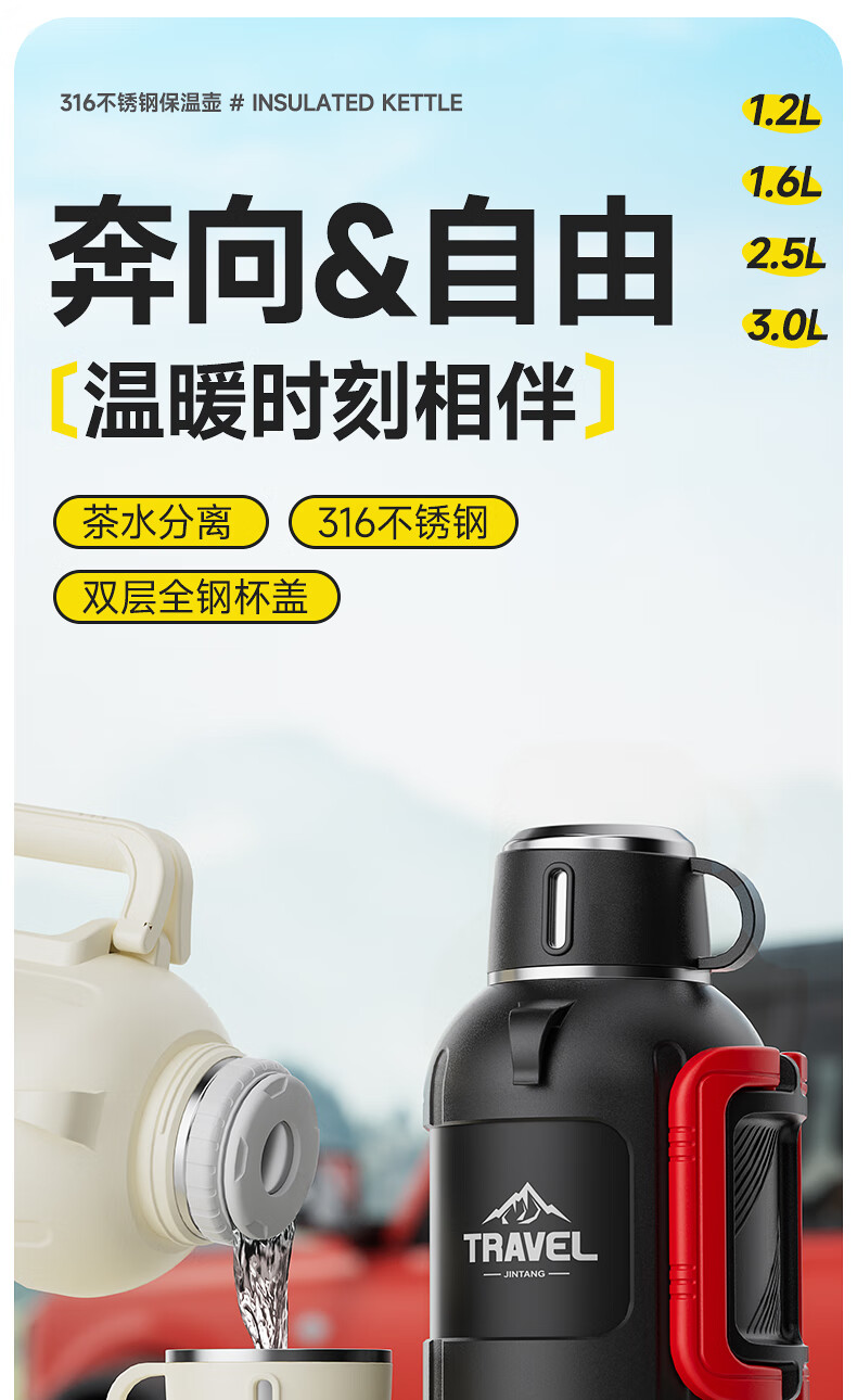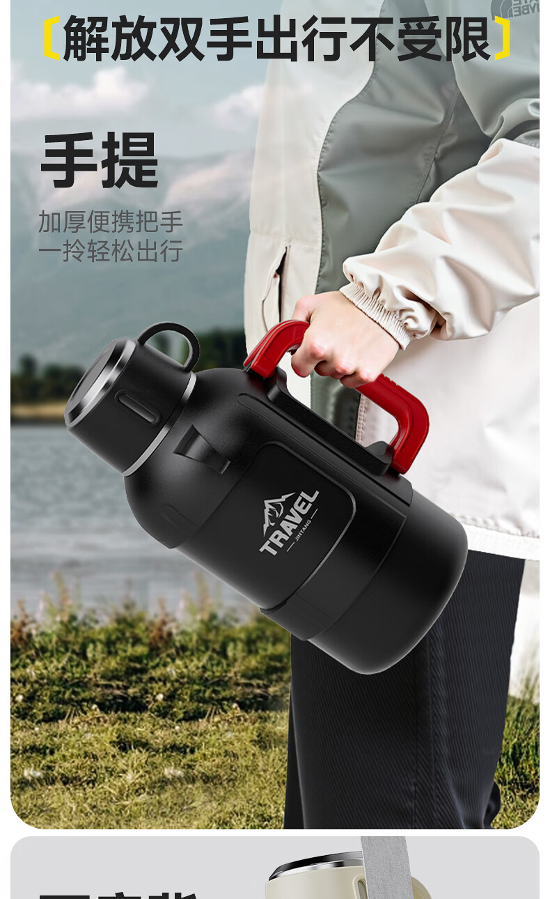 316 stainless steel thermos kettle large capacity thermos cup outdoor camping thermos kettle folding handle one cover dual use 2500ml black + folding handle + one cover dual use